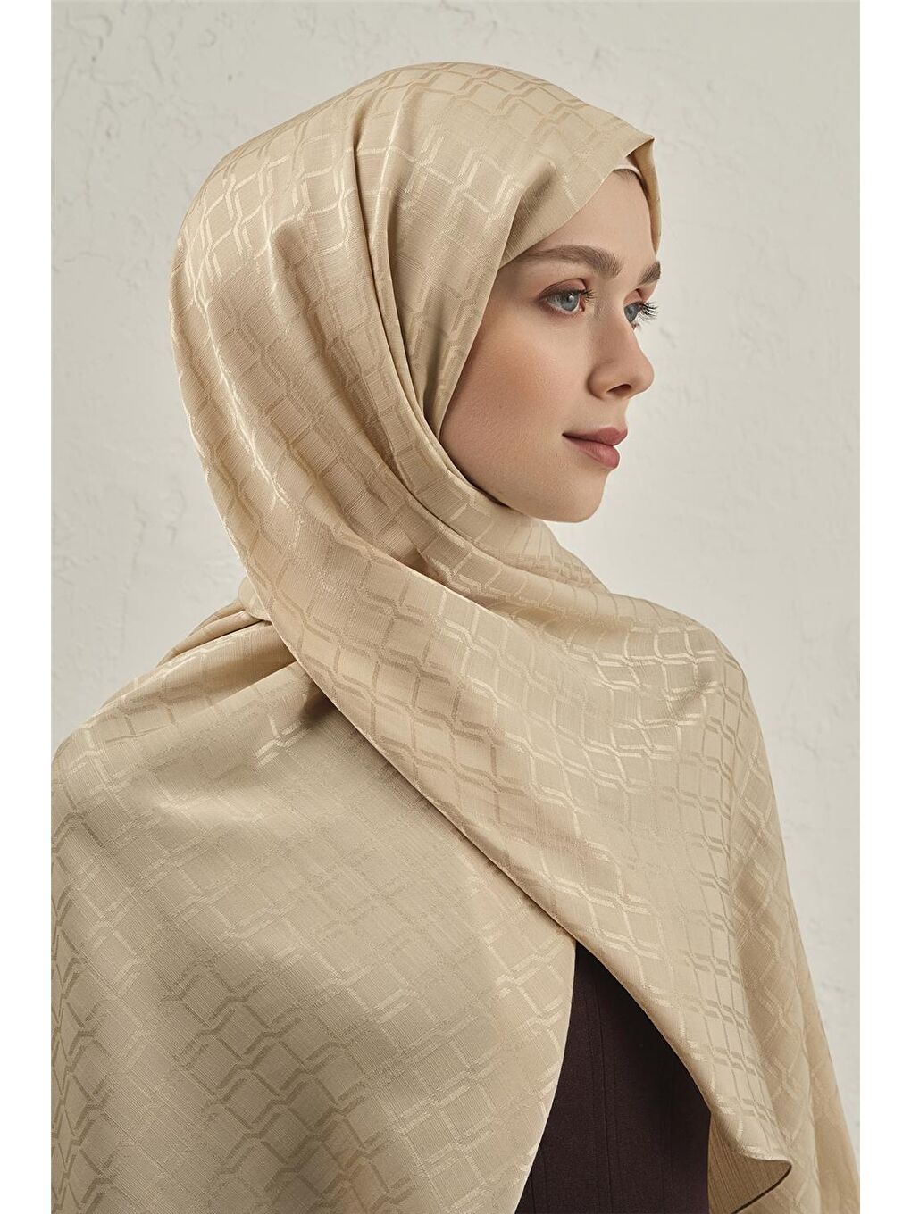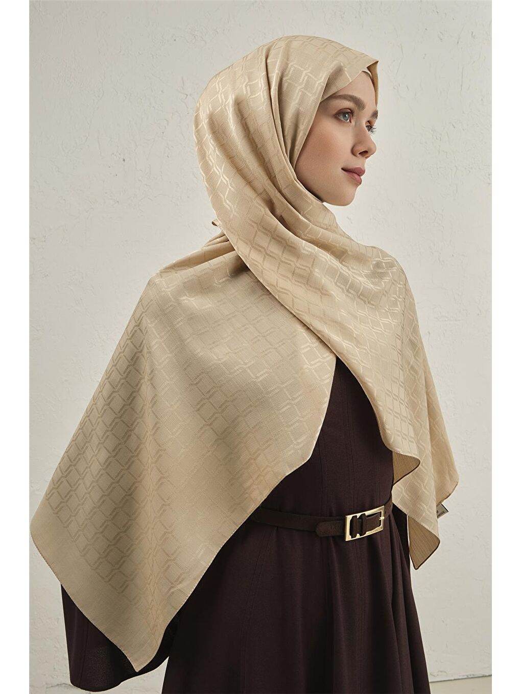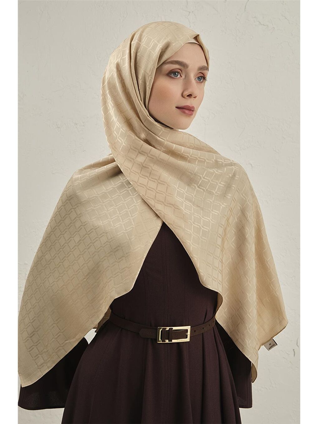 شال نخی بژ طرح ضربدری ۲ ۶۳