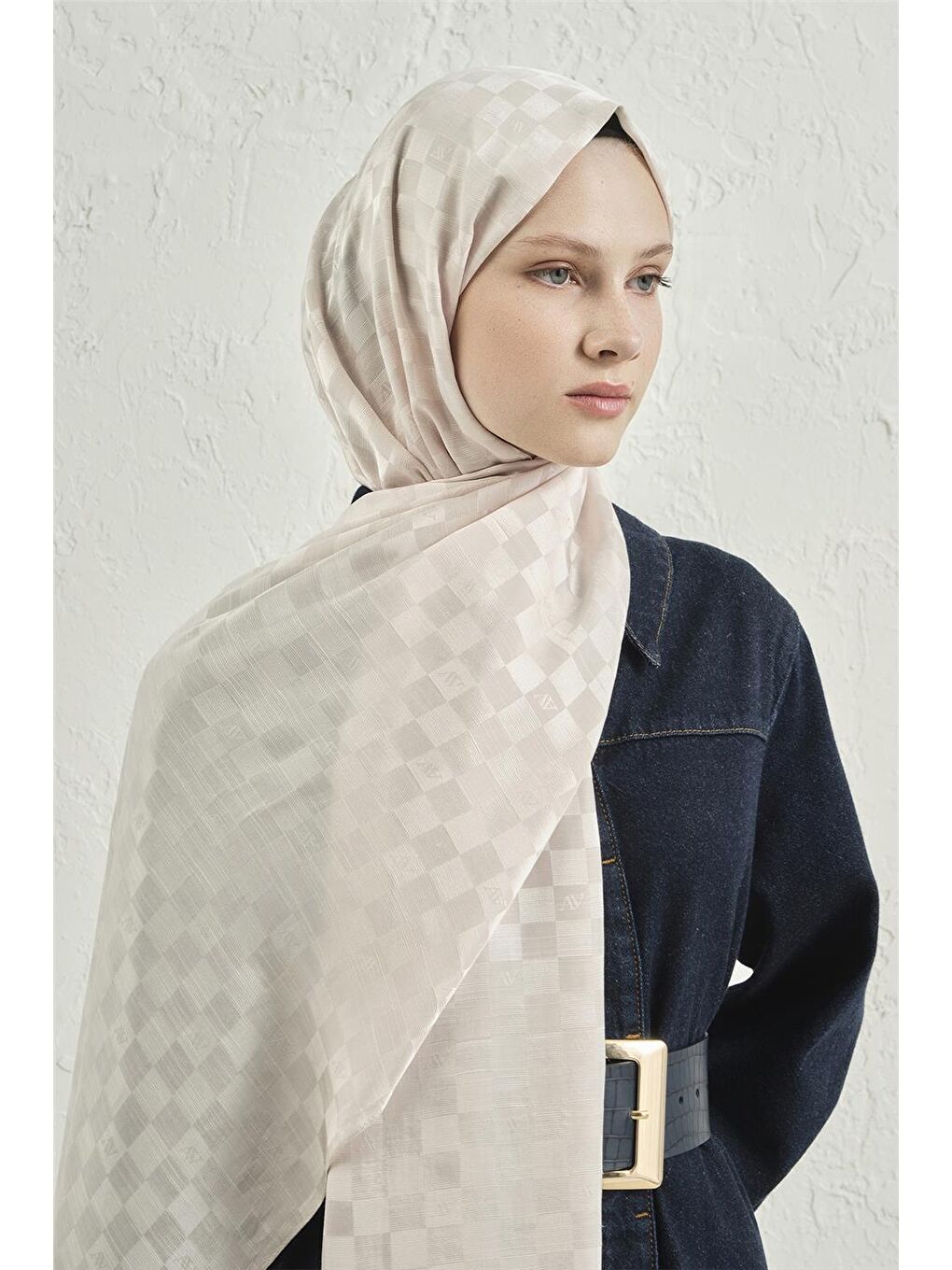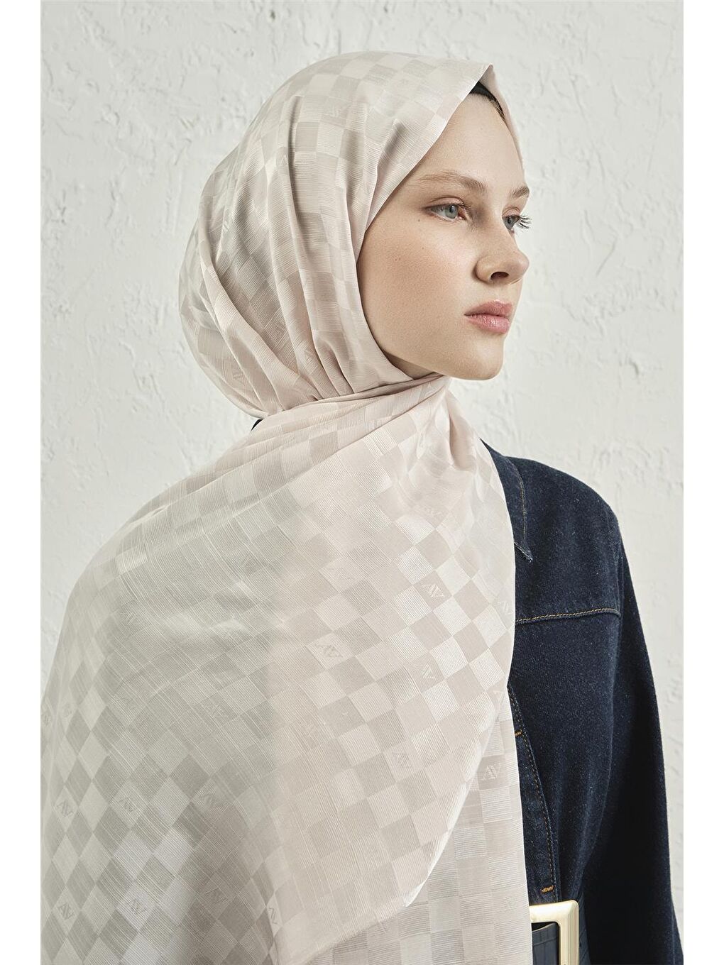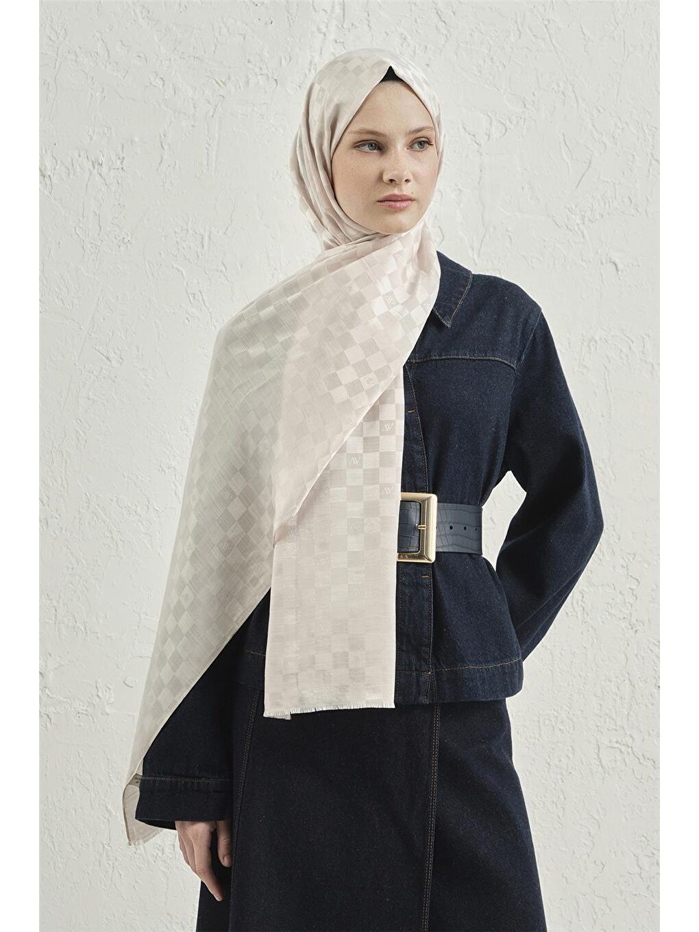 شال چهارخانه نخی ابریشمی Ecru Elegance 17