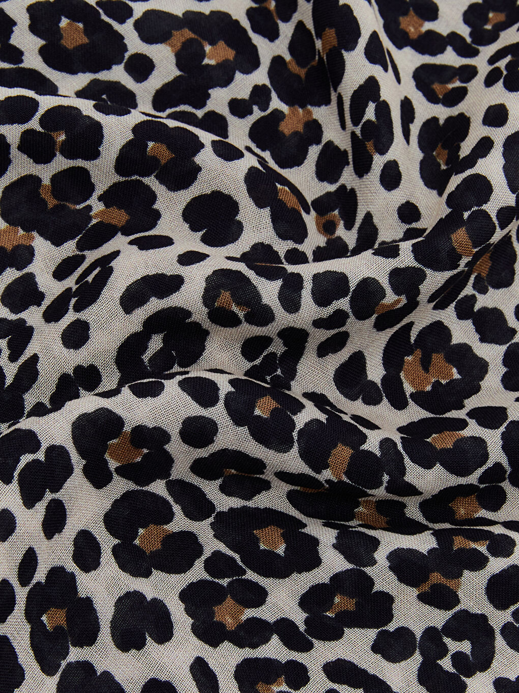 شال زنانه طرح دار از پارچه ساتن دوخته شده است.