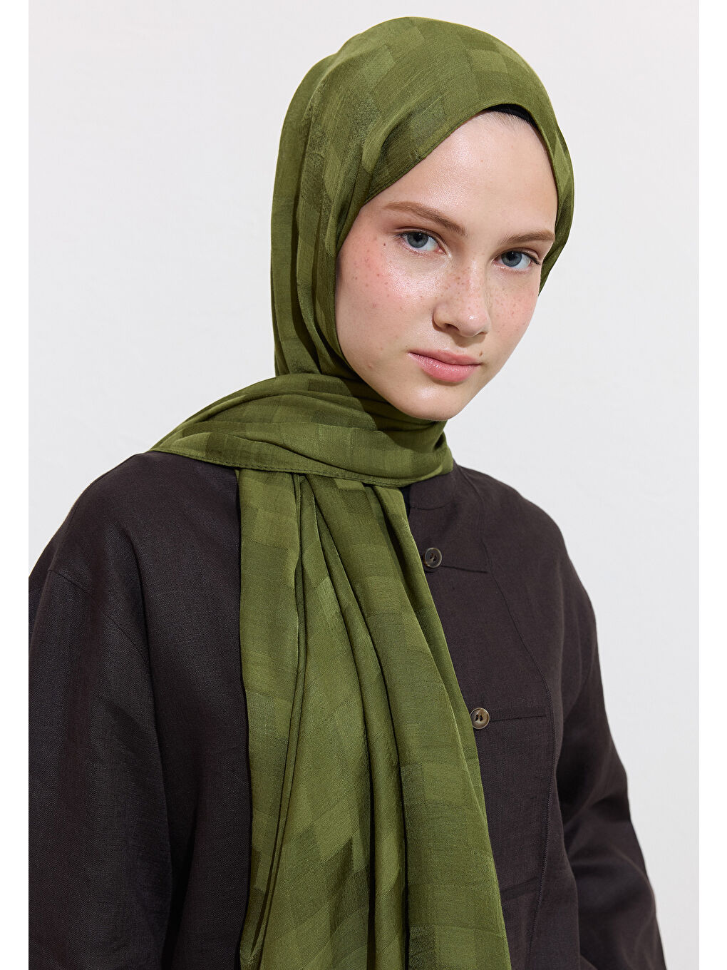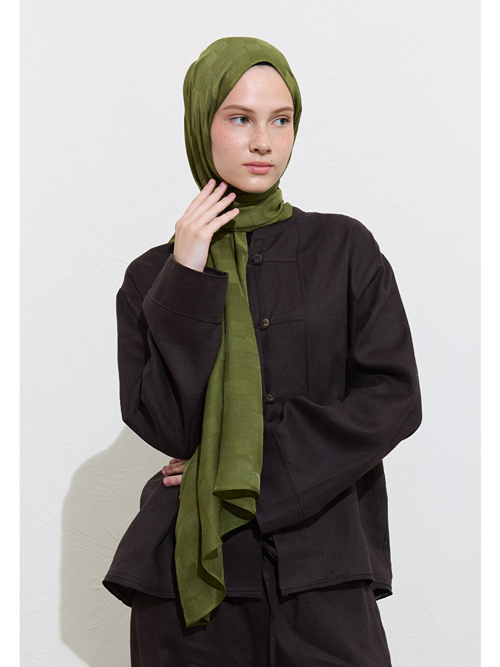 شال ژاکارد ابریشم نوری خاکی