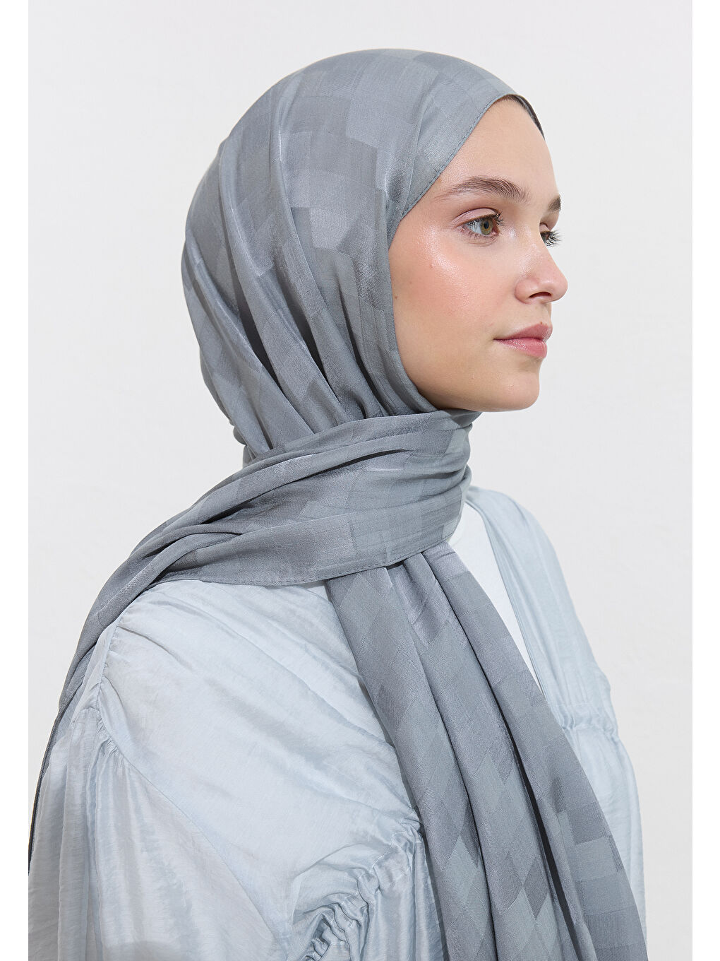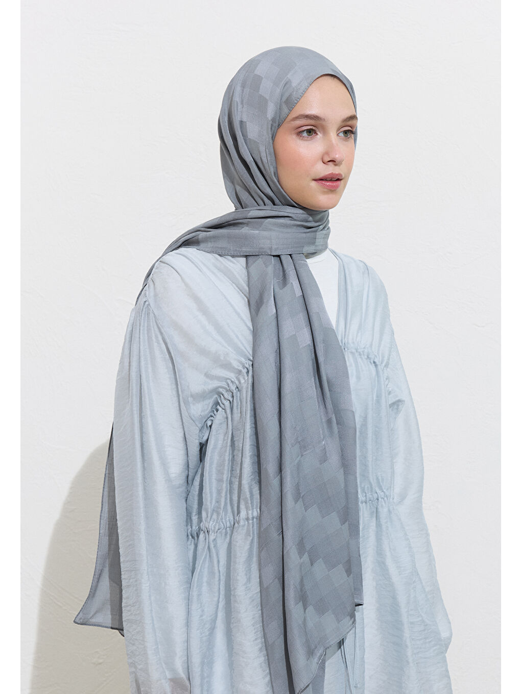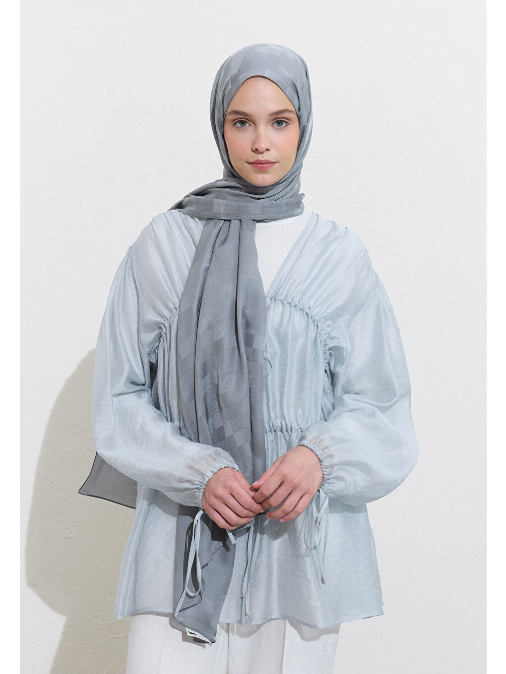 شال ژاکارد ابریشمی نوری آبی-خاکستری