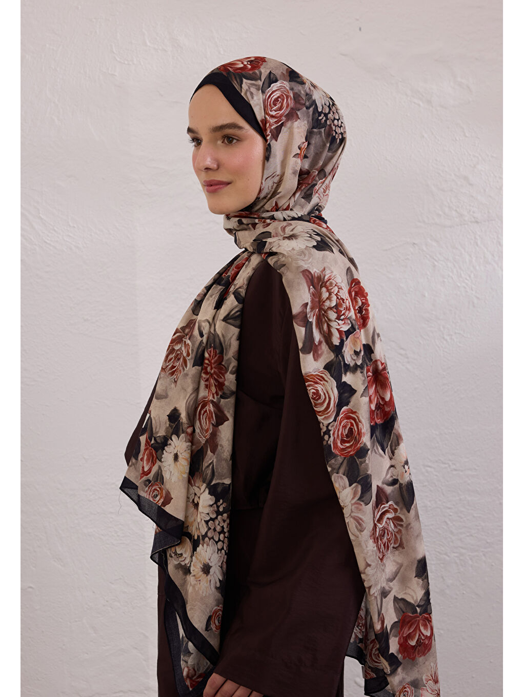 شال رامی طرح مگنولیا مشکی