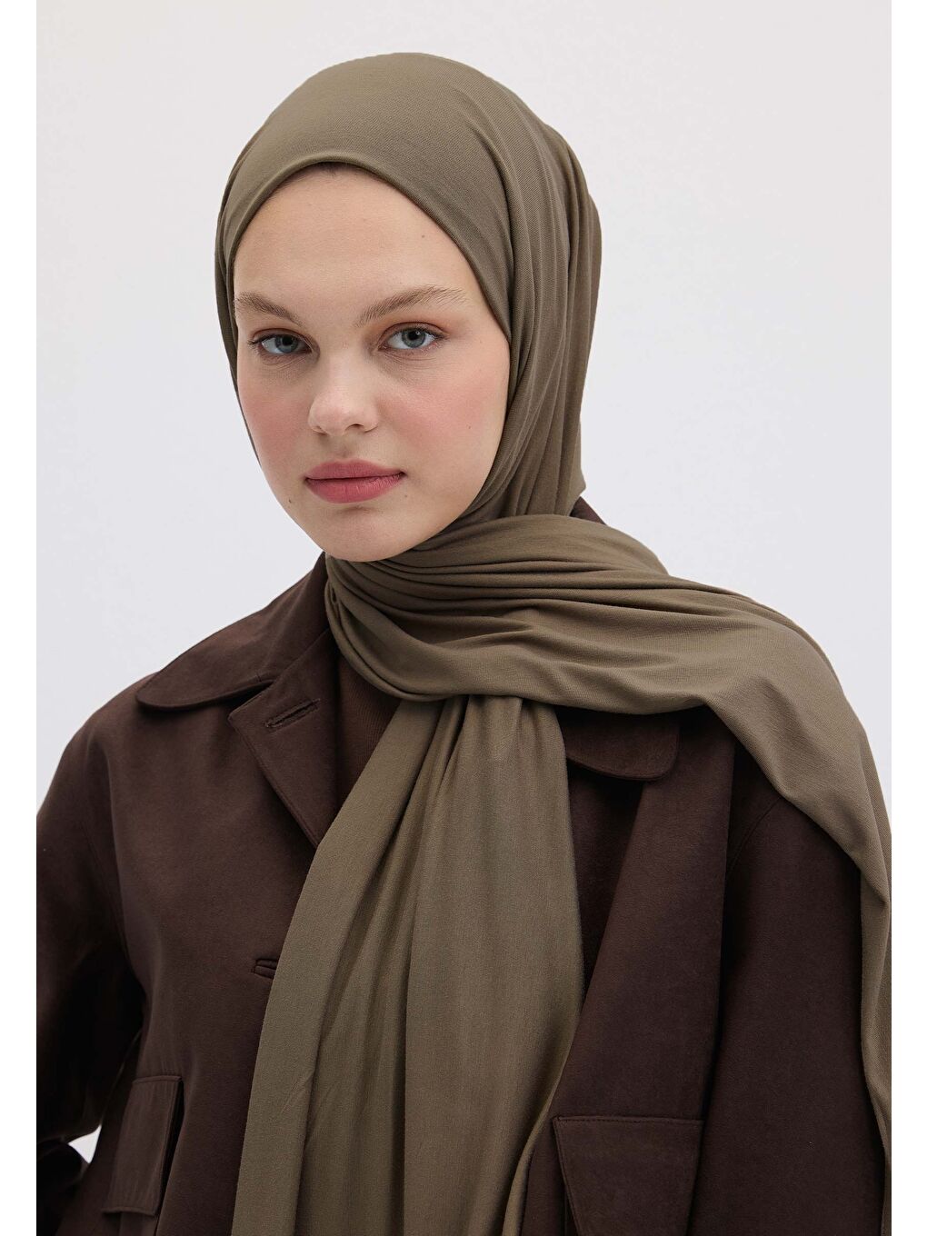 شال نخی شانه شده بامبو قهوه ای قهوه ای خاکی