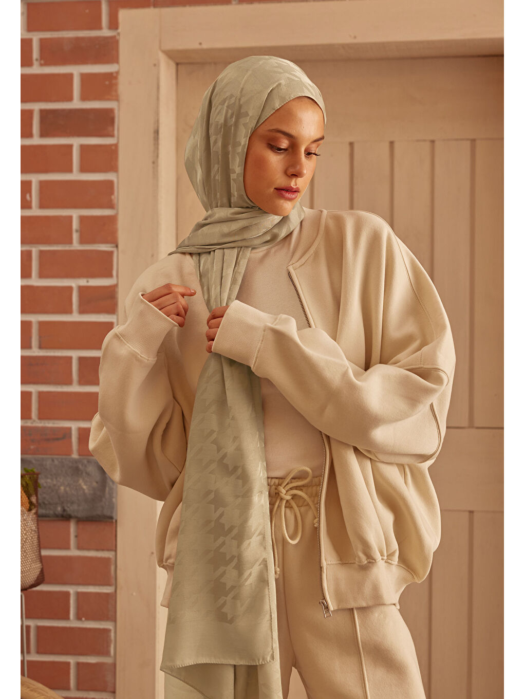 شال ژاکارد Houndstooth بژ طبیعی