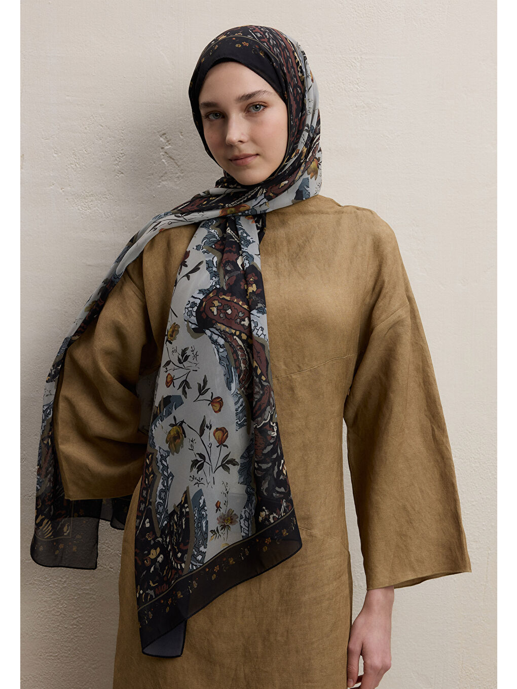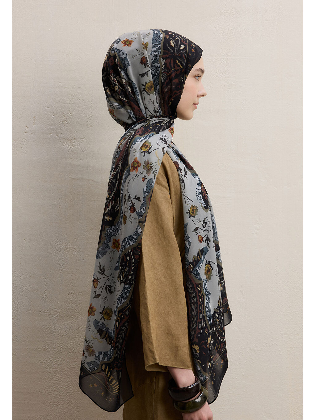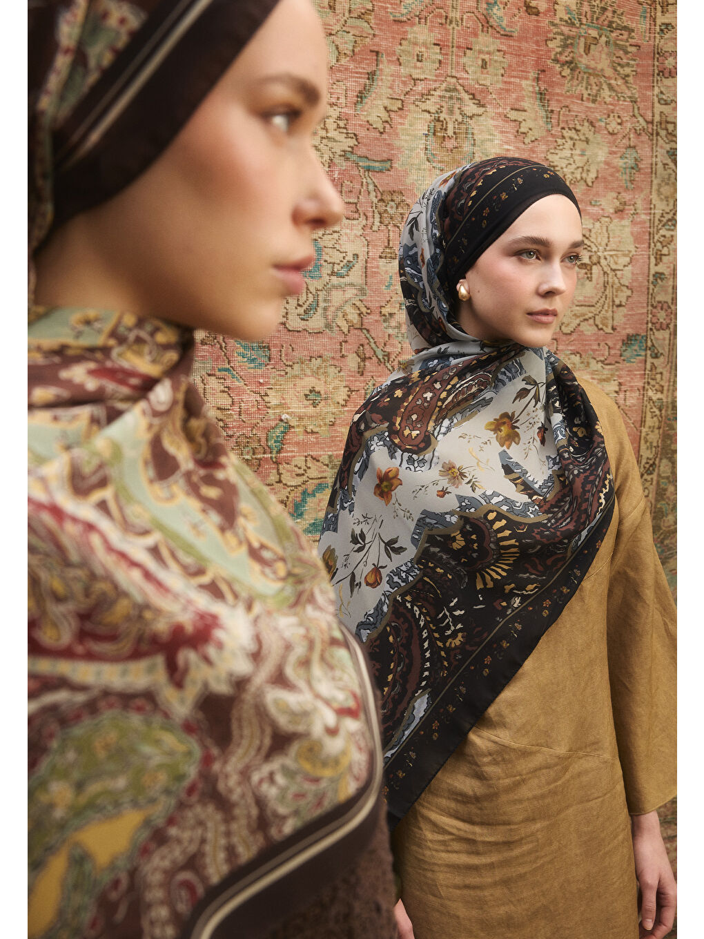 شال کرپ ابریشمی قهوه‌ای طرح آلیزا طرح قهوه تلخ