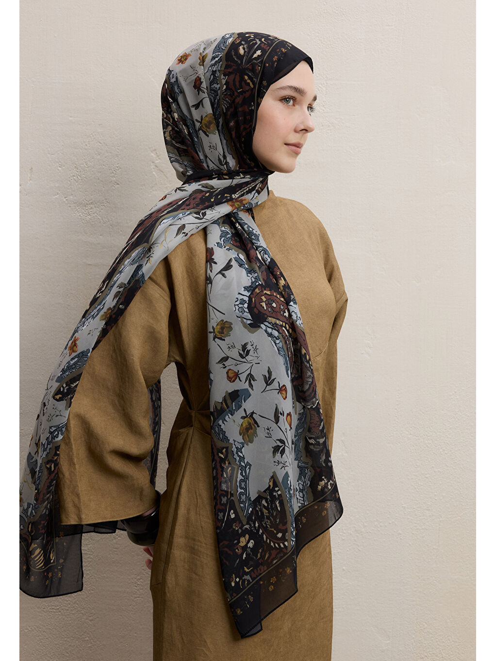 پارچه کرپ ابریشمی. بافت این محصول نازک، سبک و روان است. در صورت استفاده به صورت تک لایه، رنگ‌های روشن آن نمایان می‌شود. مناسب برای استفاده در هر چهار فصل. باید با دست و در دمای پایین شسته شود. برای خشک شدن باید پهن شود. ابعاد: ۷۲*۱۹۰ سانتی‌متر.