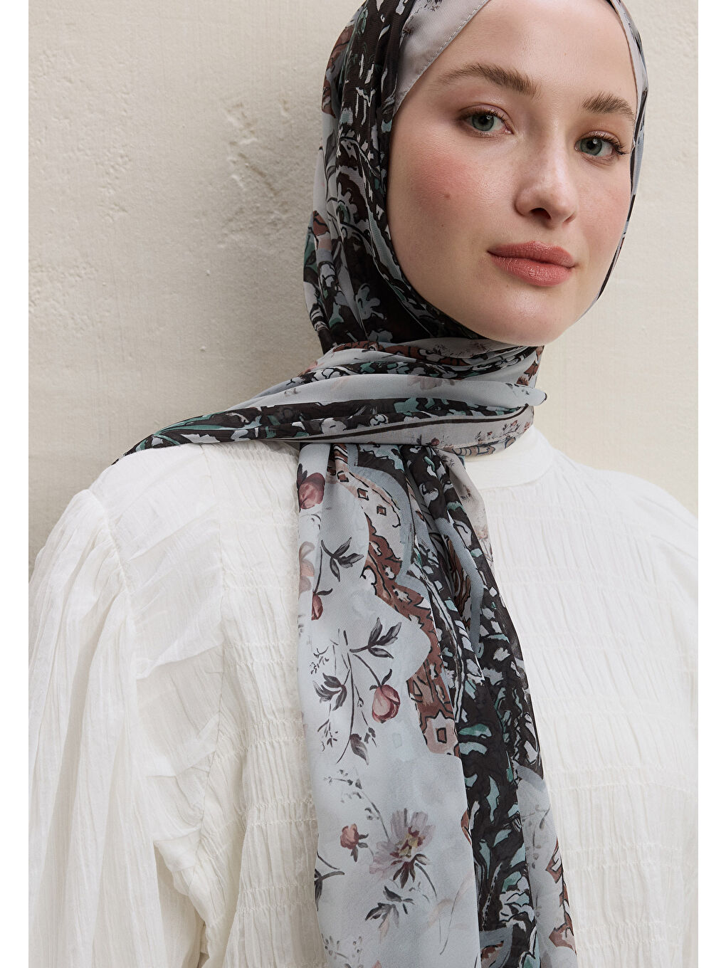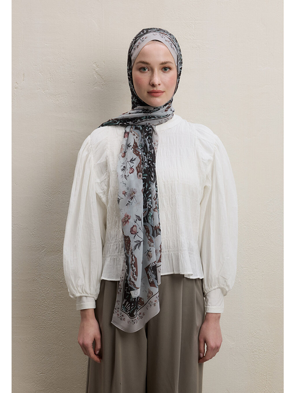 شال کرپ ابریشمی طرح بژ آلیزا طرح سنگی