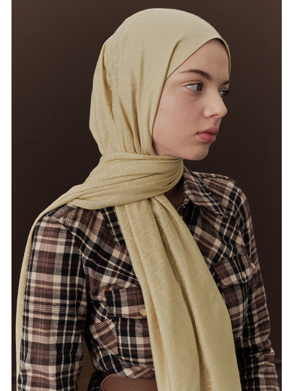 شال پشمی ممتاز ساده بژ ماسهای