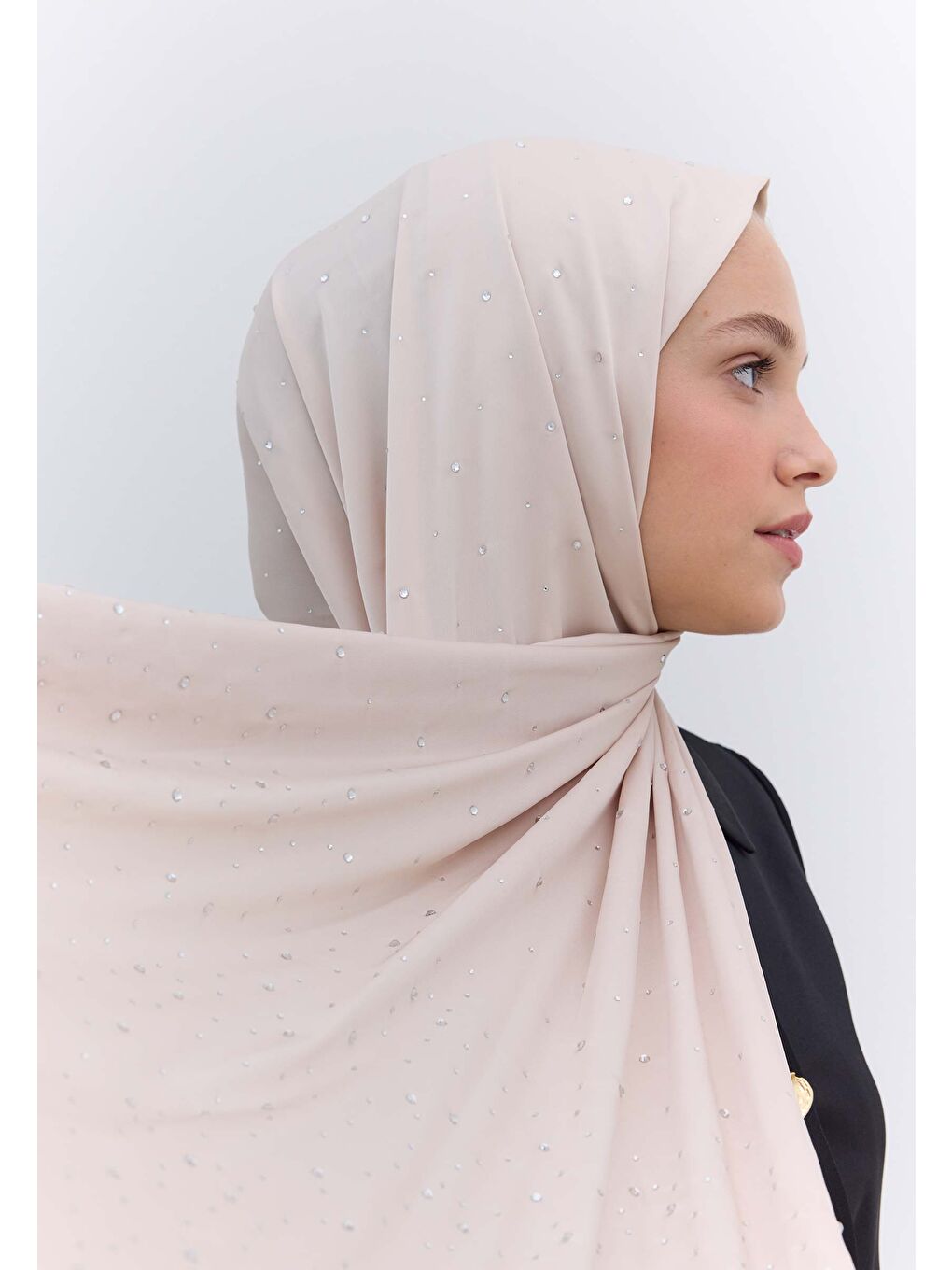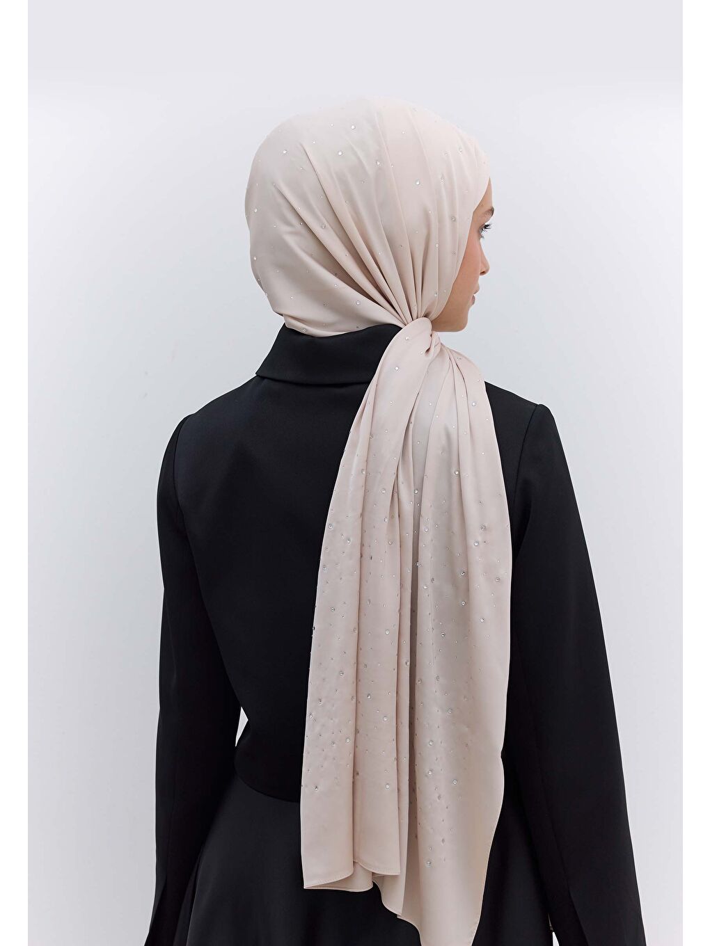 شال ابریشمی سنگ استراس بژ