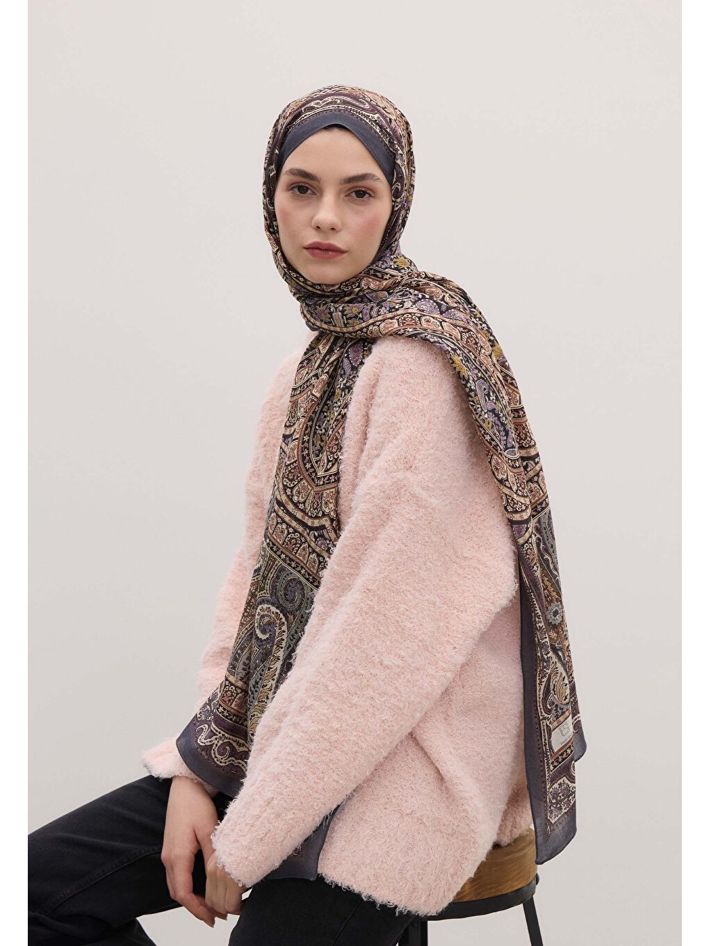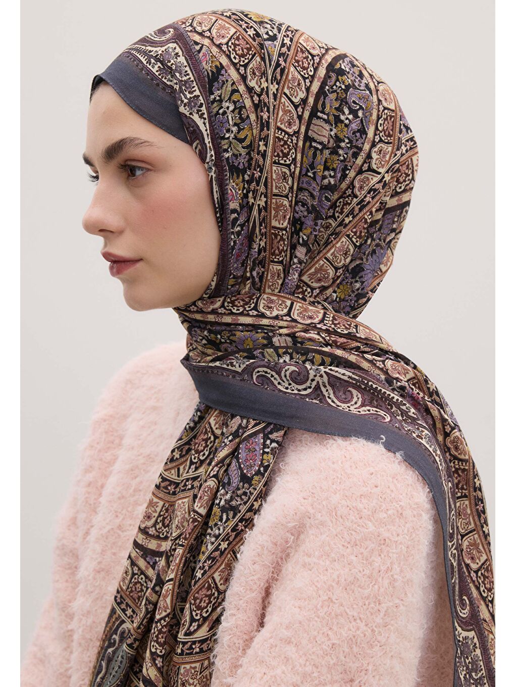 شال ارکیده طرح پیزلی بنفش نوردیک