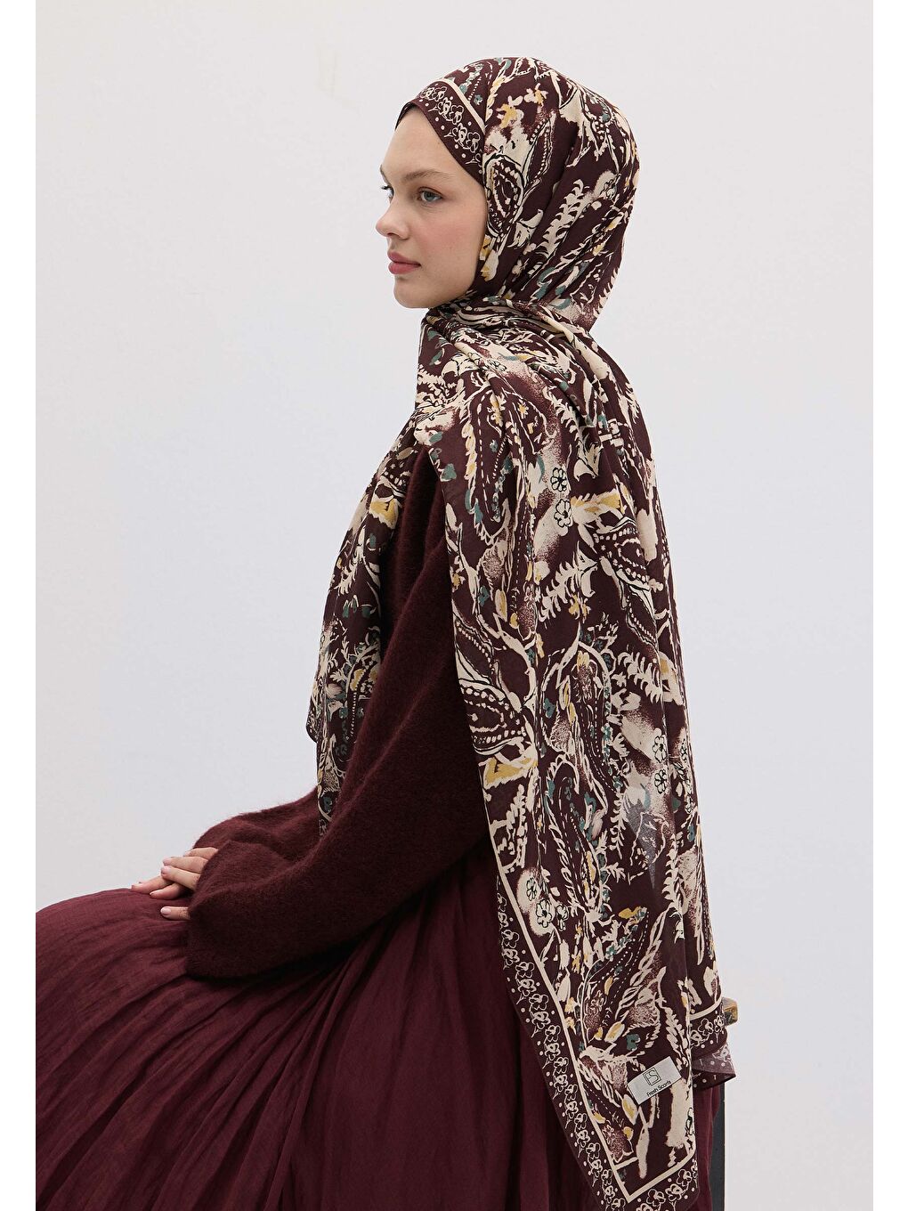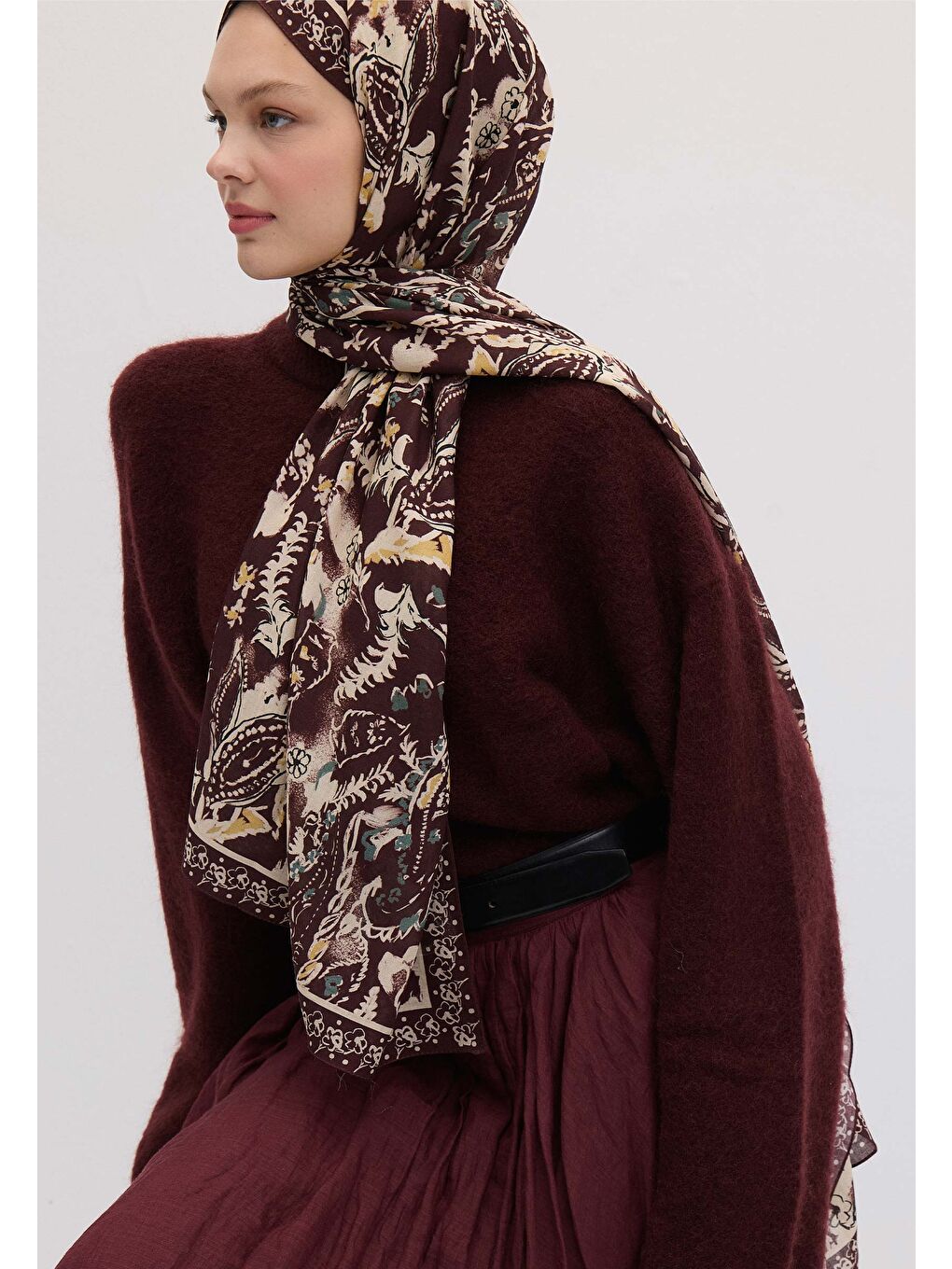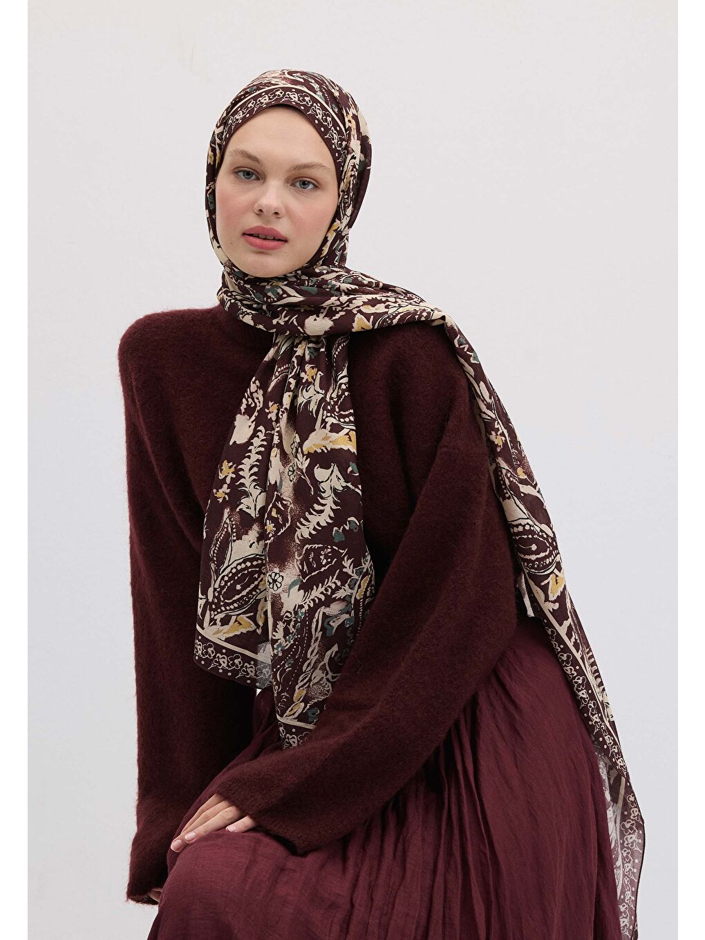 شال طرح گل بته جقه به رنگ آلویی تیره