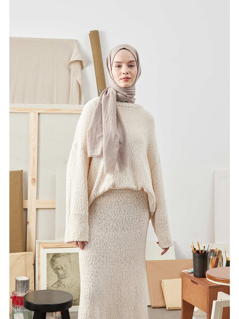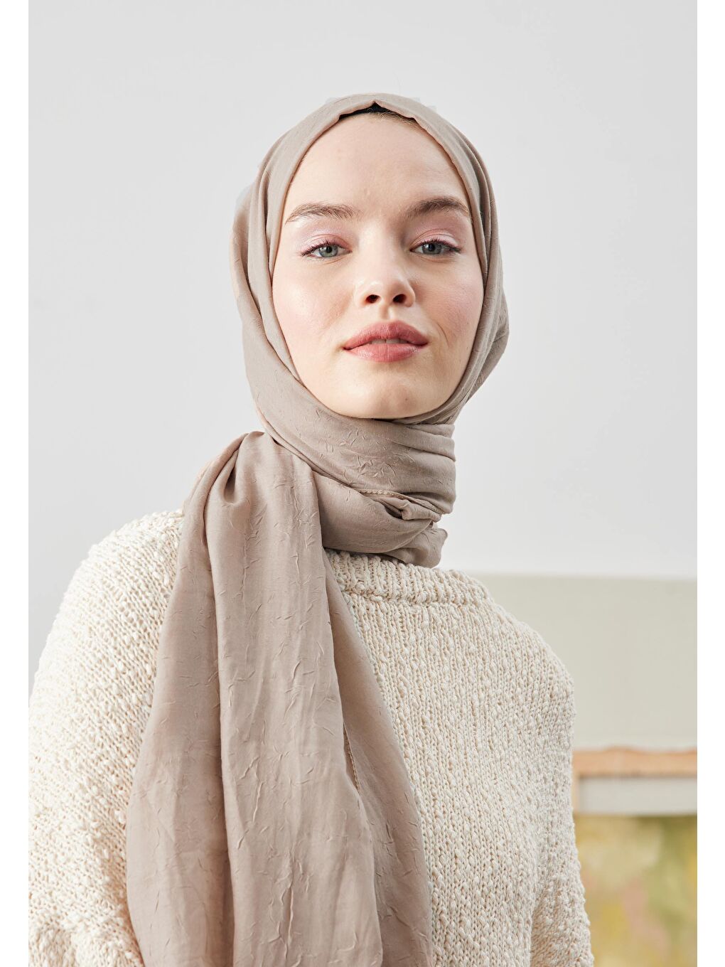 شال بامبو بژ ماسهای