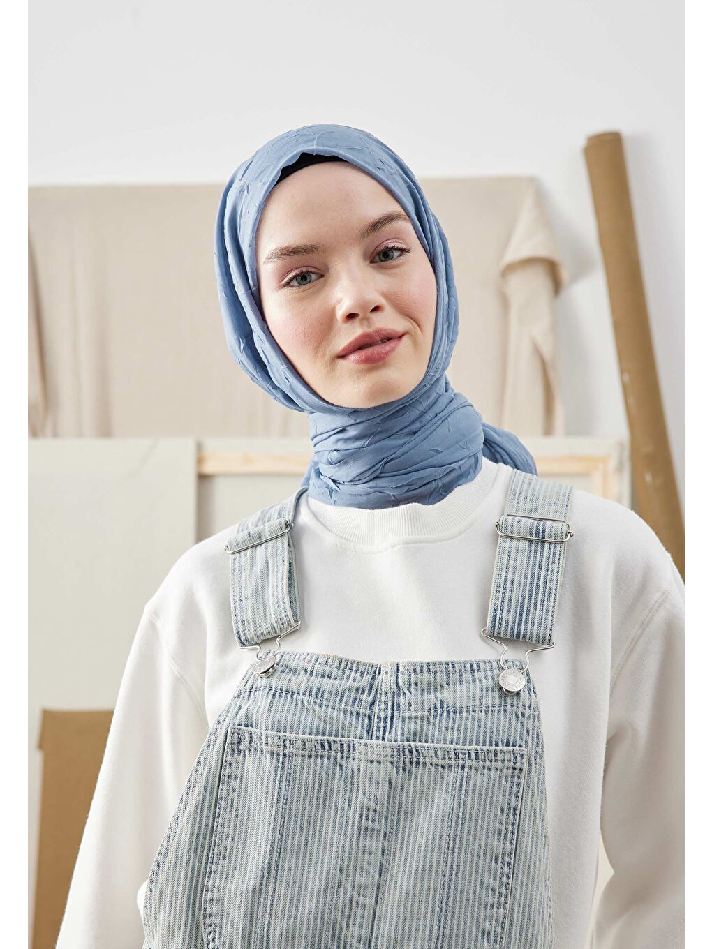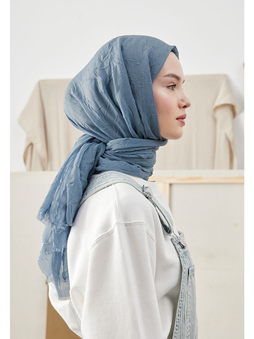 شال بامبو فیروزه‌ای جین آبی