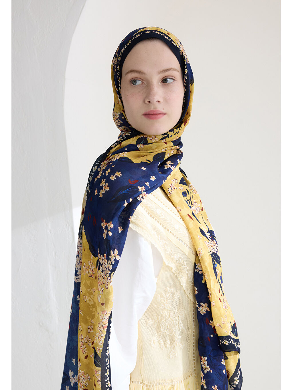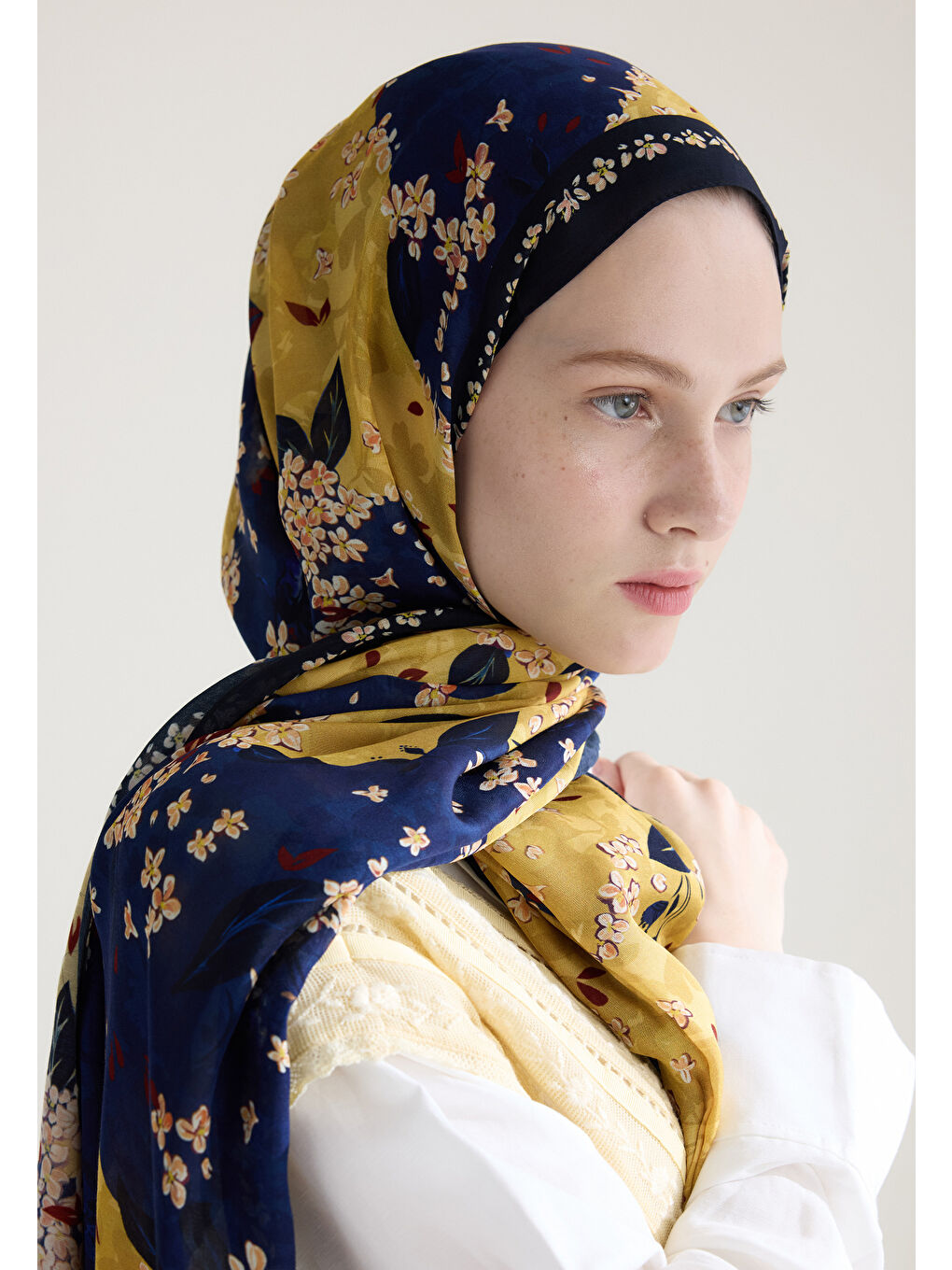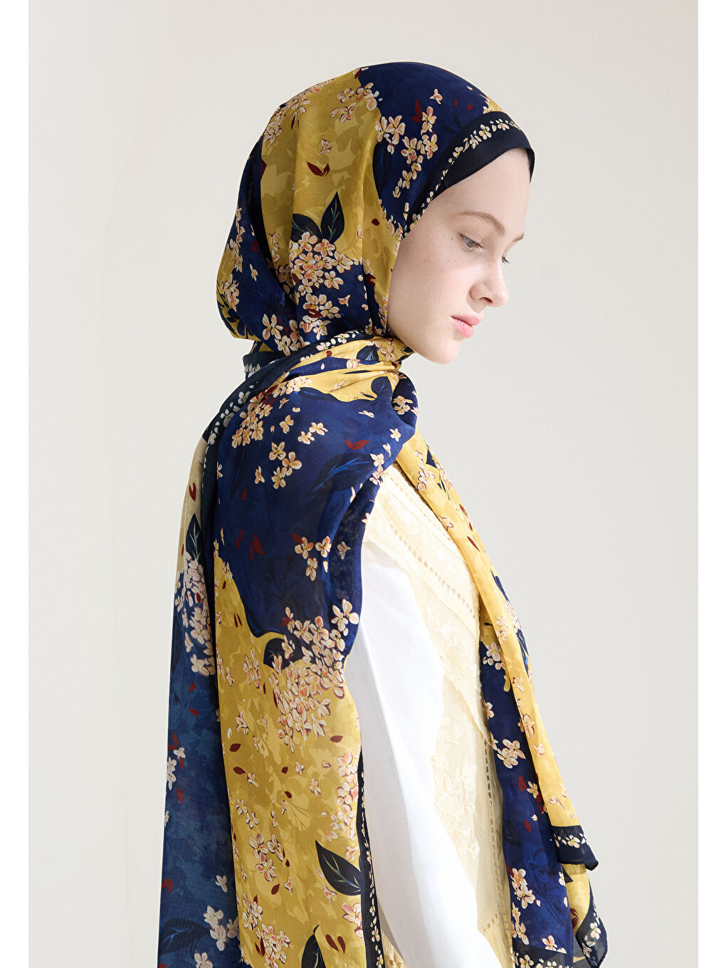 شال ویسکوز نخی کوچک پلومریا به رنگ آبی تیره