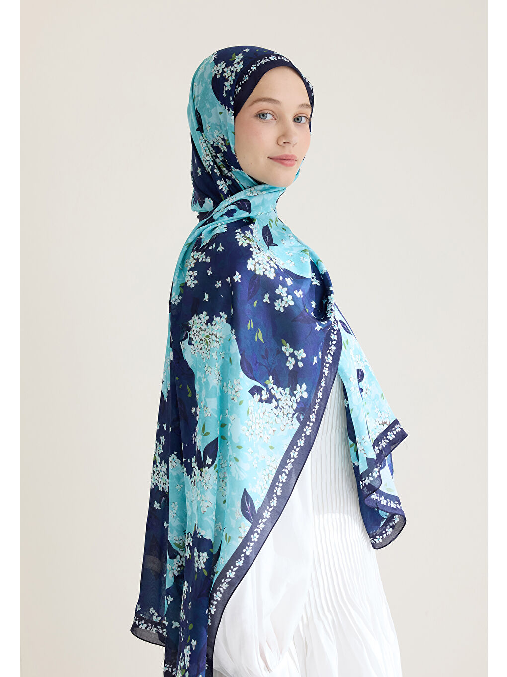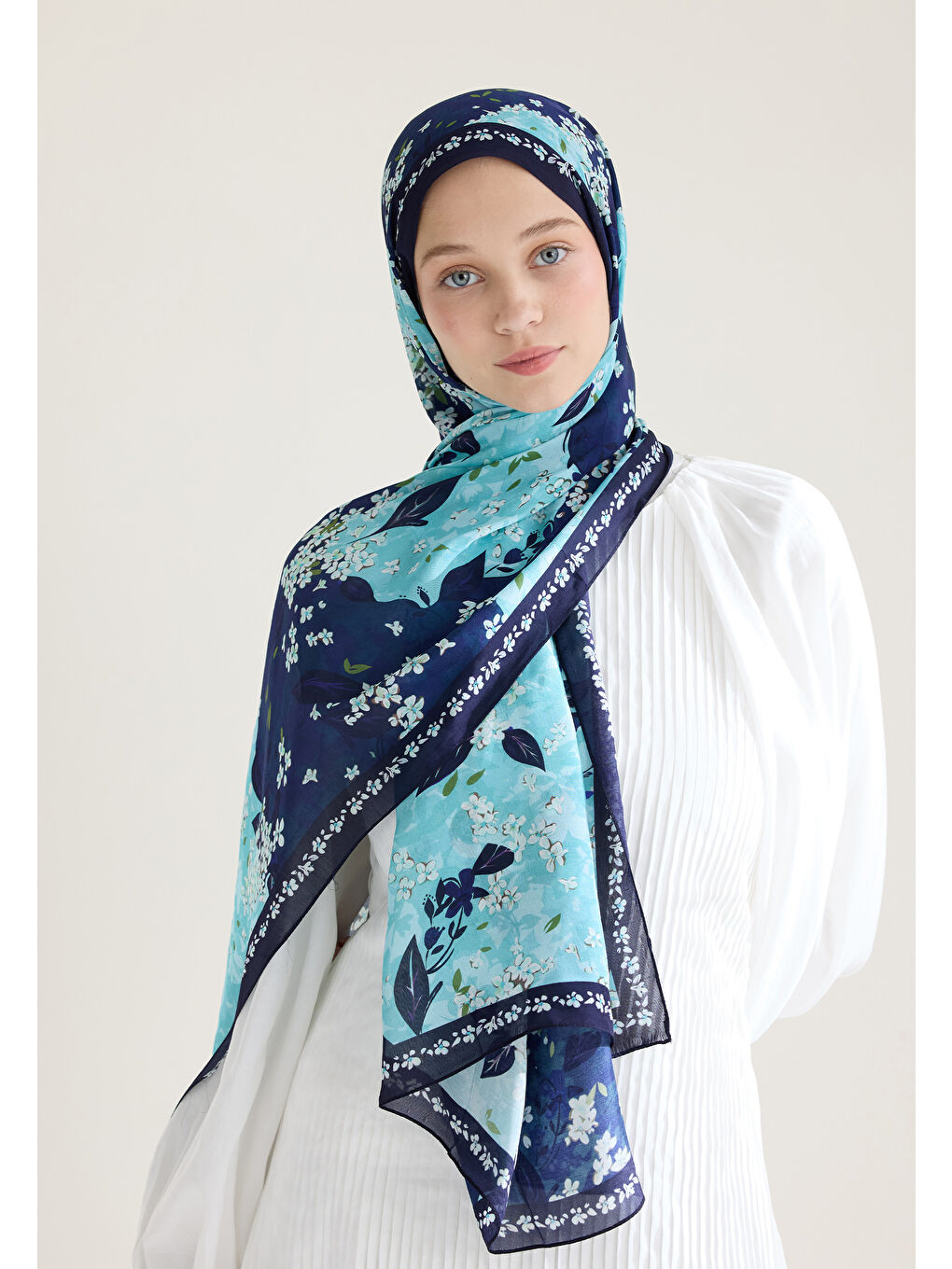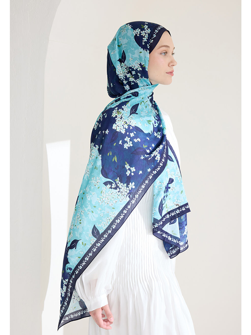 شال ویسکوز نخی کوچک پلومریا سرمه‌ای