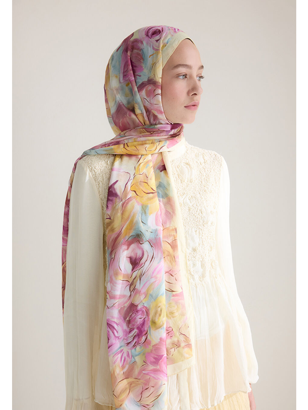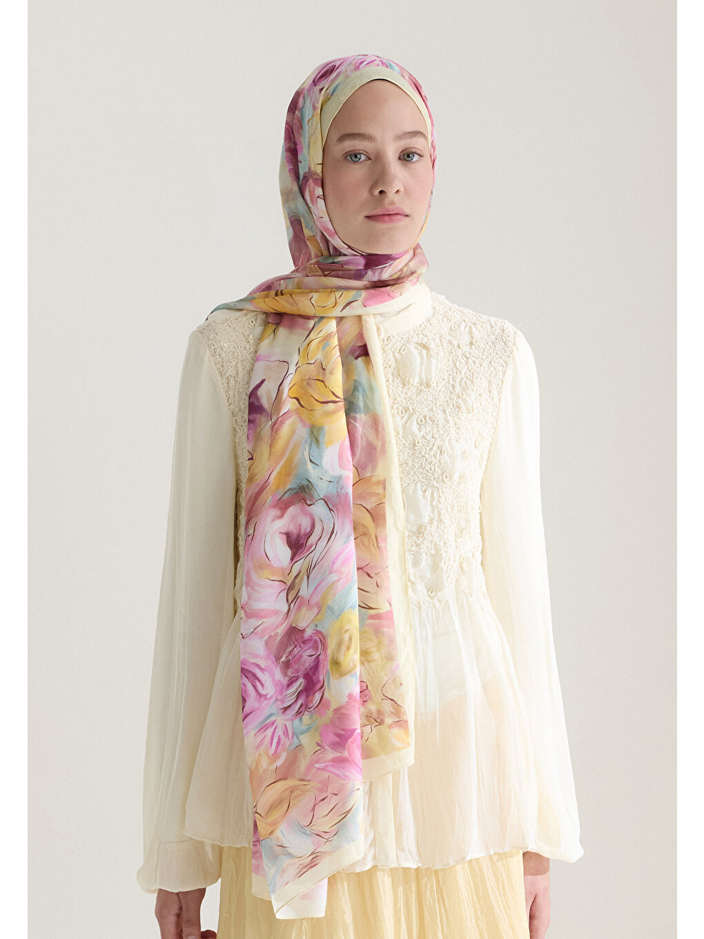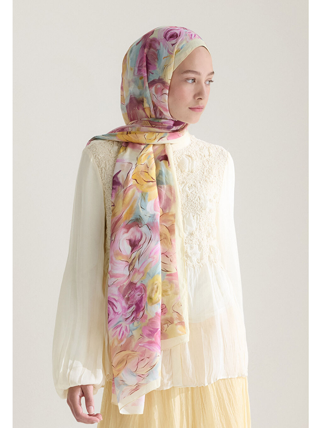 شال ویسکوز نخی رز گاردن مدل زرد پاستلی