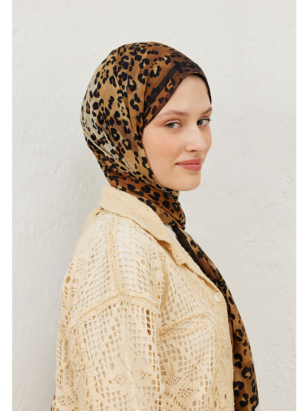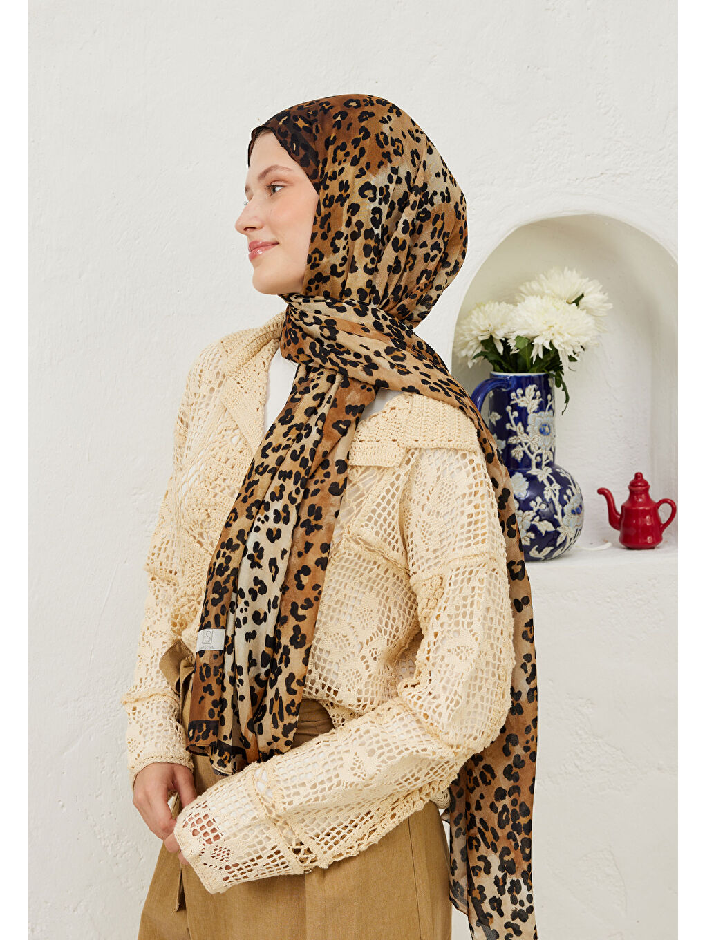 شال رامی طرح پلنگی قهوهای طرح شتری