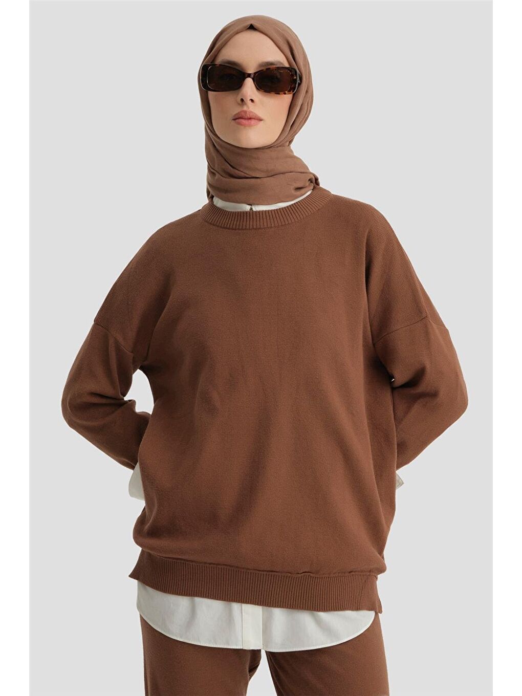 کت و شلوار بافتنی قهوهای 24Kd4215 قهوهای تلخ