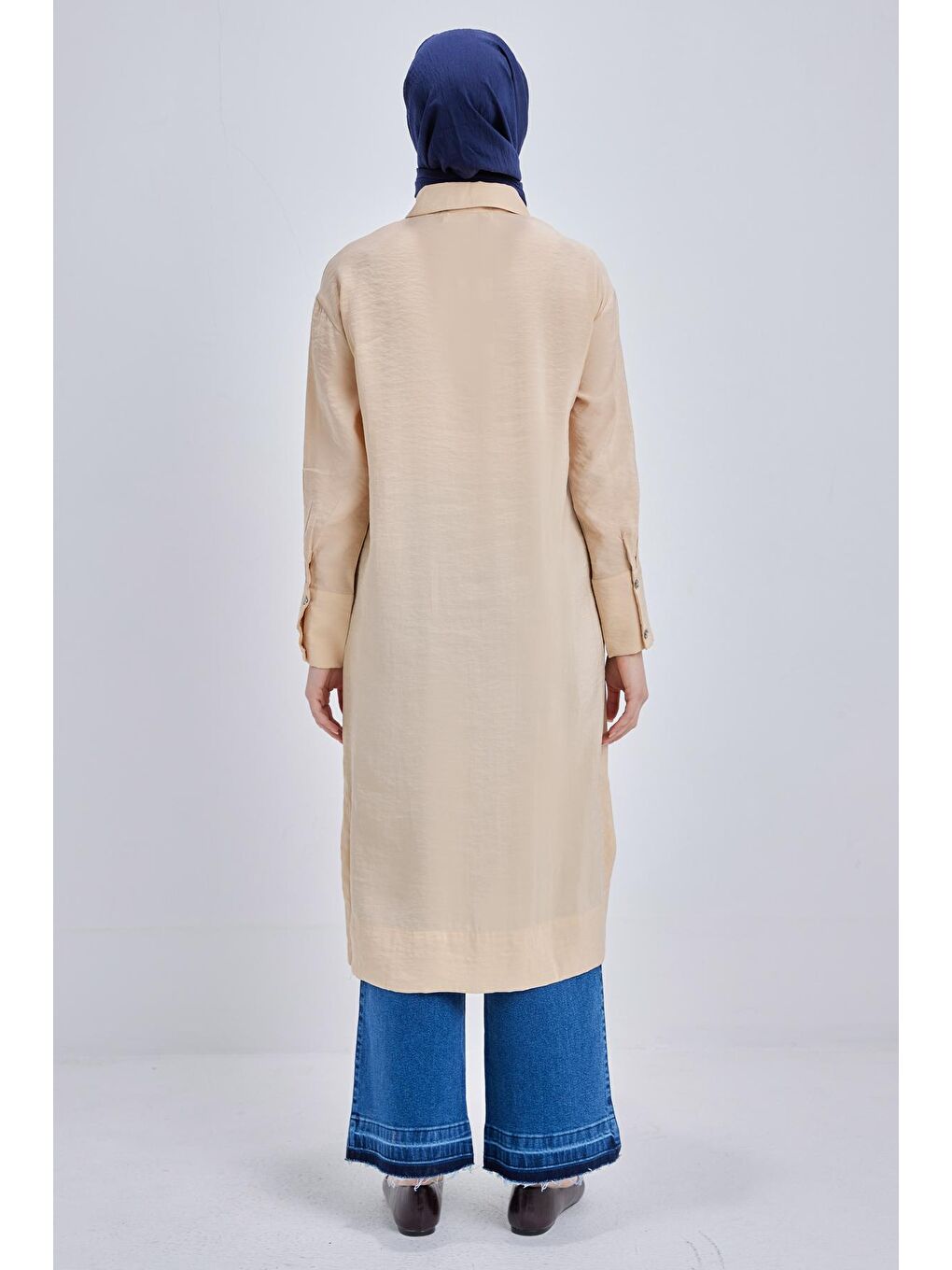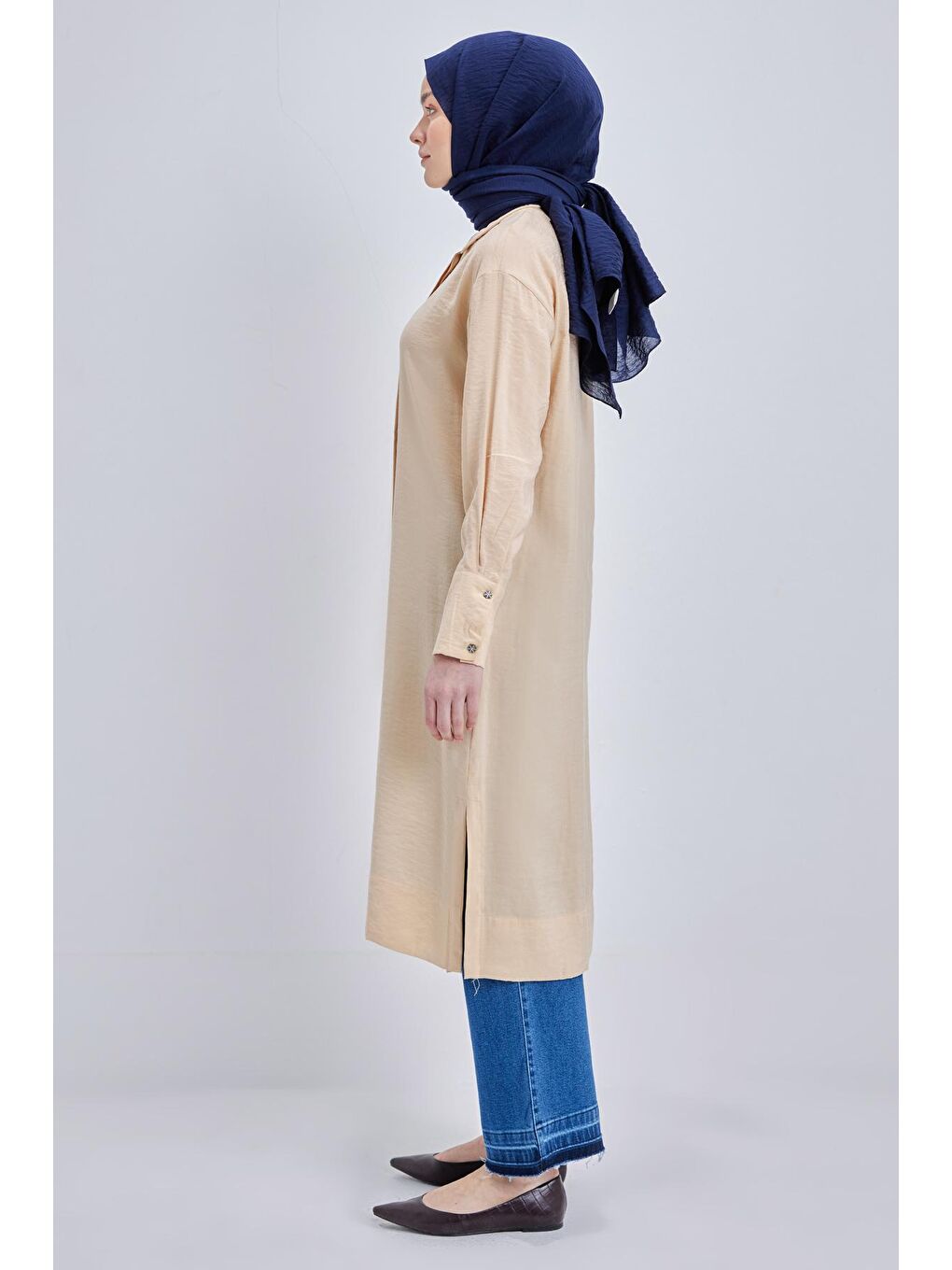 تونیک پیراهن مودال دکمهدار بژ طرح سنگ