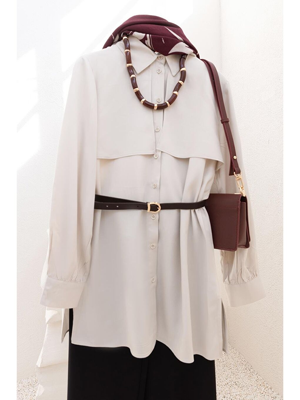 پیراهن بادگیر جلو سنگی بژ