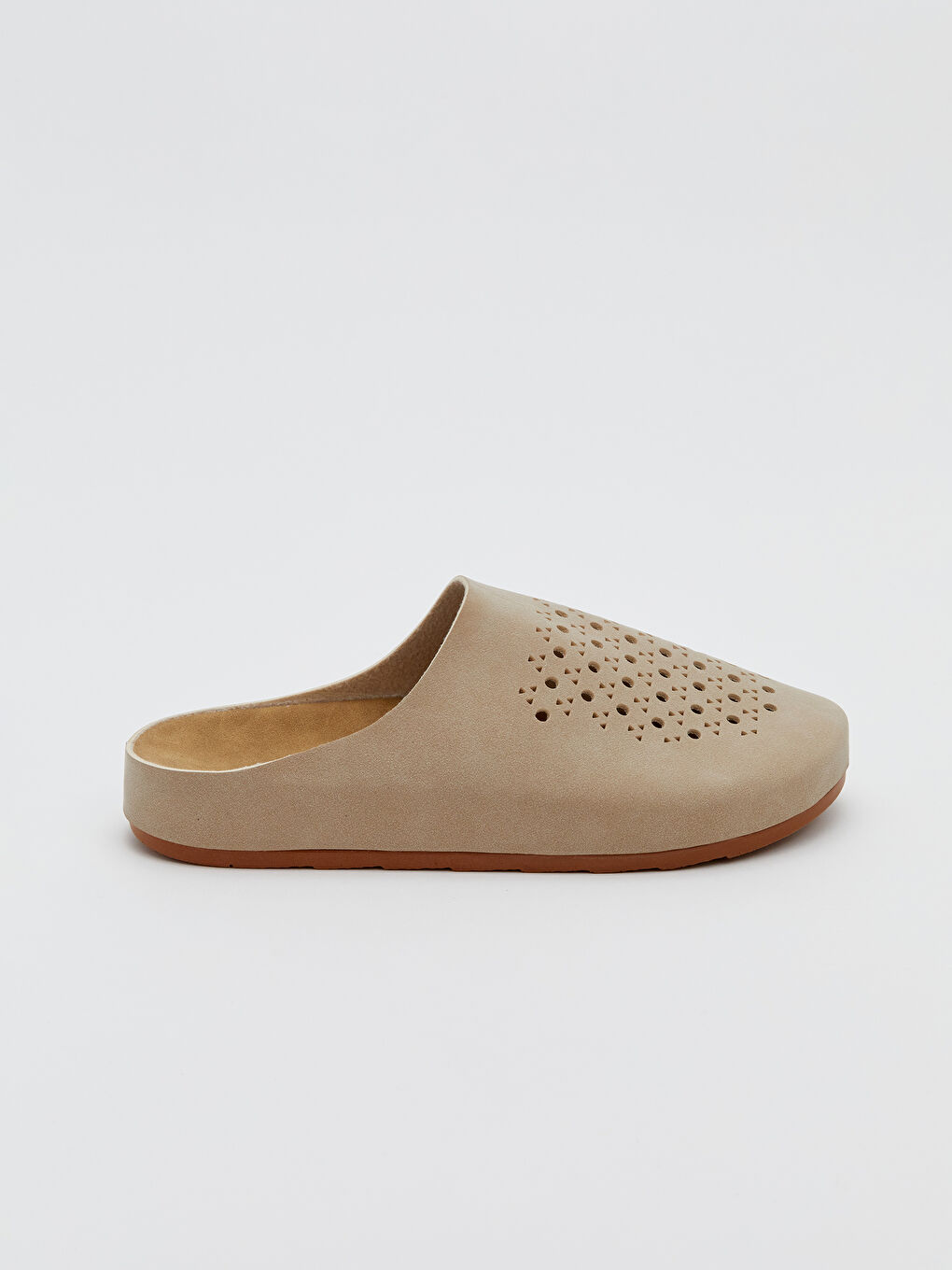 دمپاییهای زنانه خانگی دارای پشت باز، پنجه بسته، رویه سوراخدار برش لیزری و کف صاف هستند.