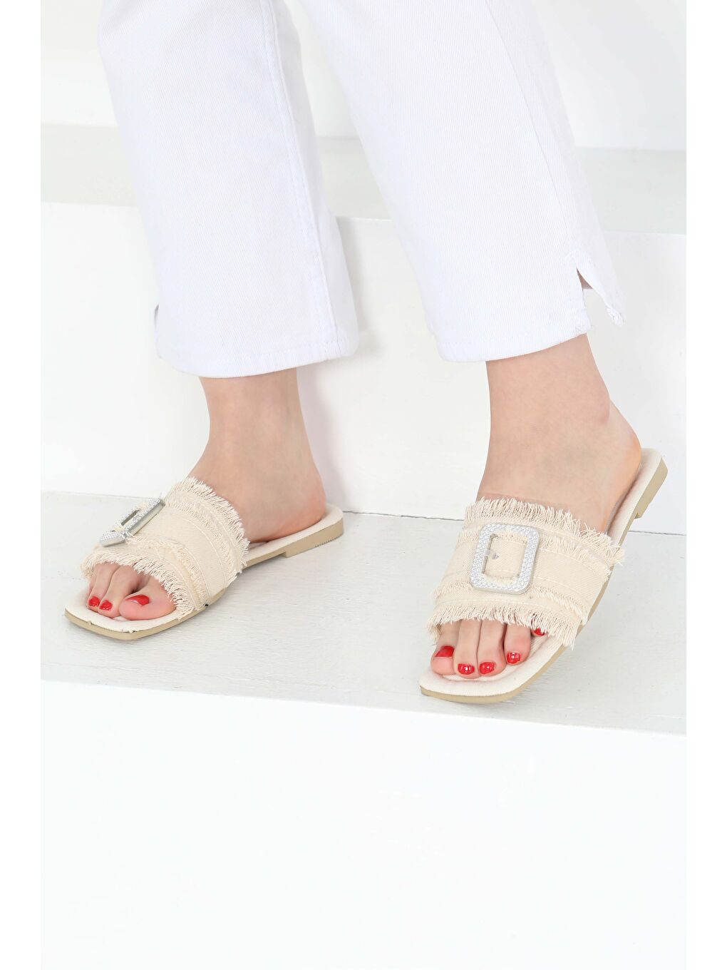 دمپایی جین سگک‌دار کرم رنگ زنانه اکرو کد ۲۷۱۵۹
