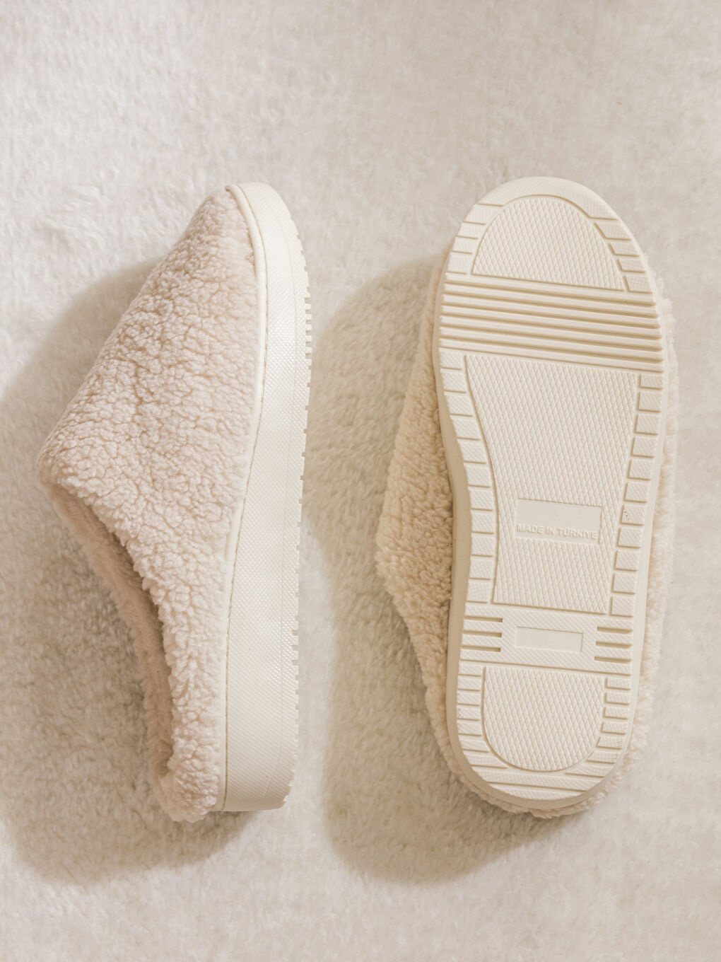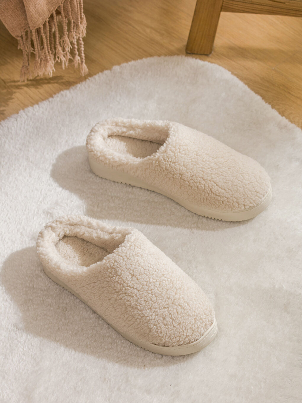 دمپایی خانگی مخمل خواب دار زنانه بژ