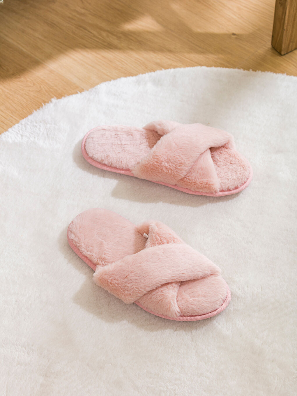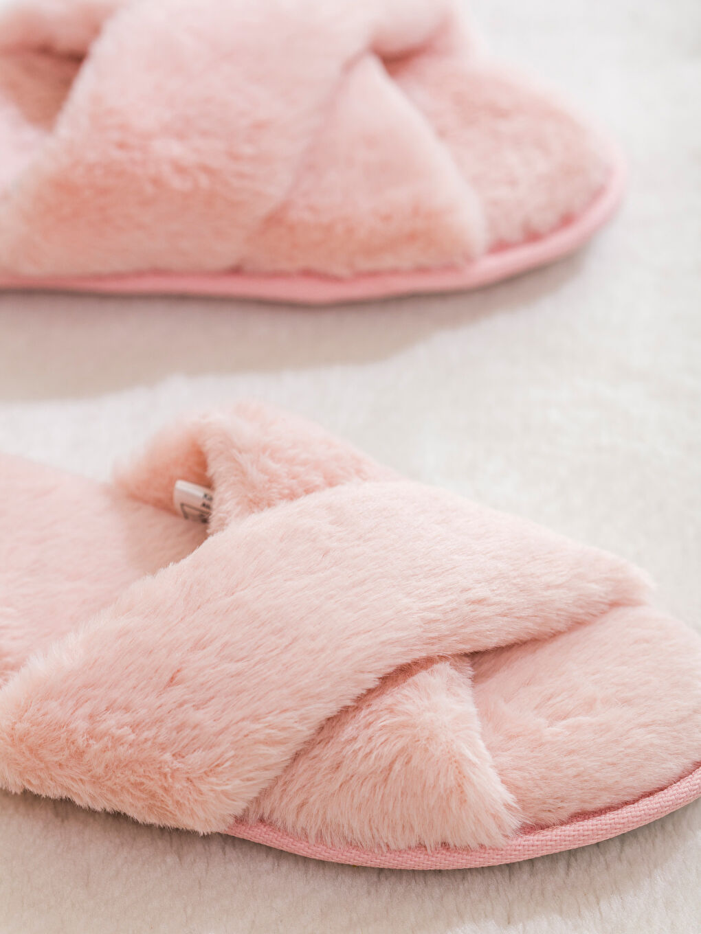 این دمپاییهای زنانه خانگی که از پارچه مخمل ساخته شدهاند، دارای بند ضربدری و طراحی پنجه باز هستند.