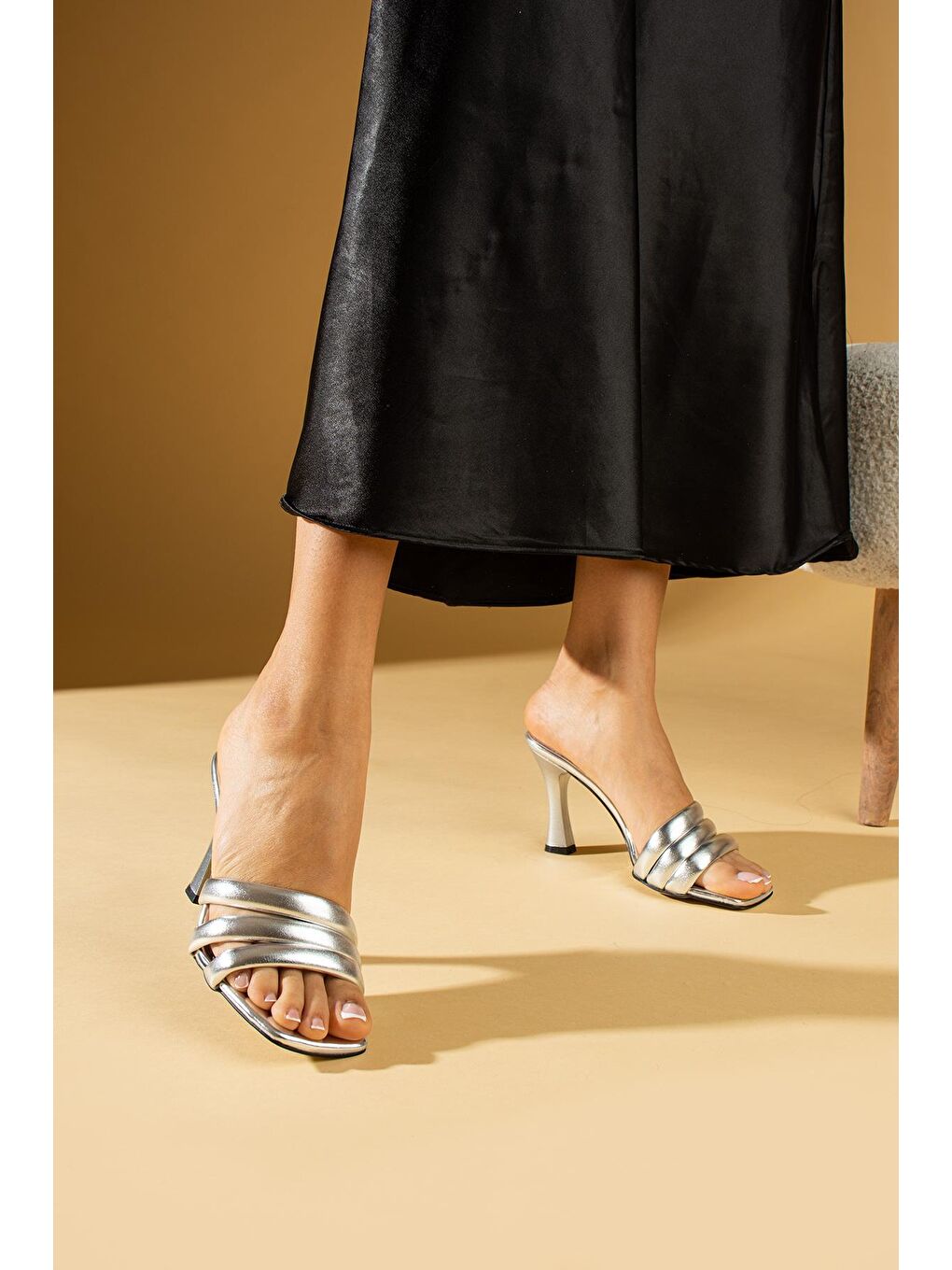 دمپایی راحتی زنانه پاشنه بلند شیشهای سه راهه خاکستری 009-83-24
