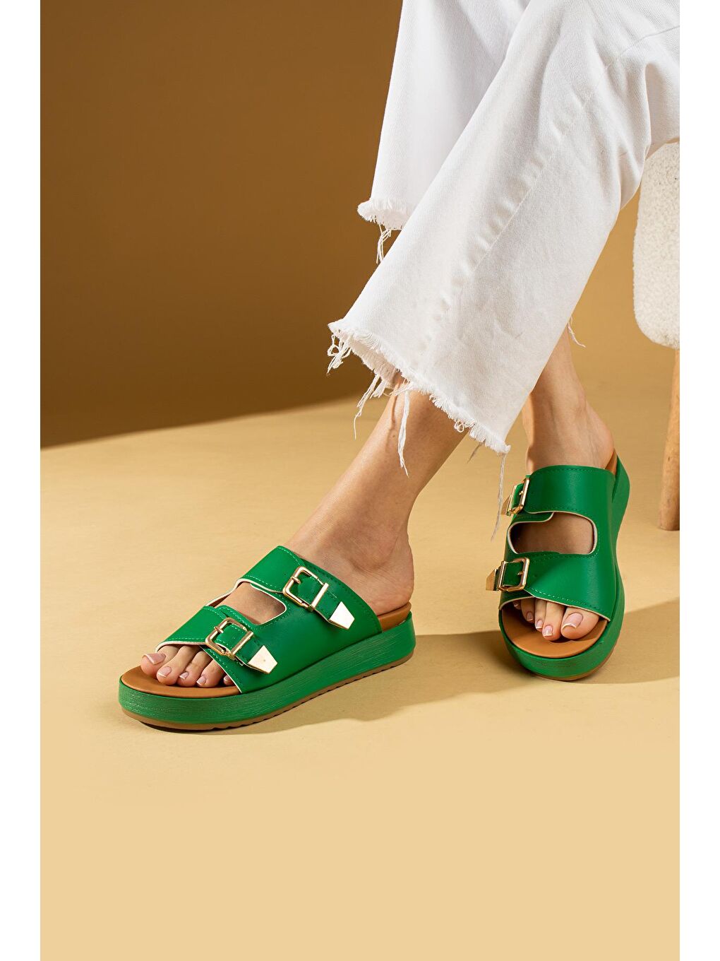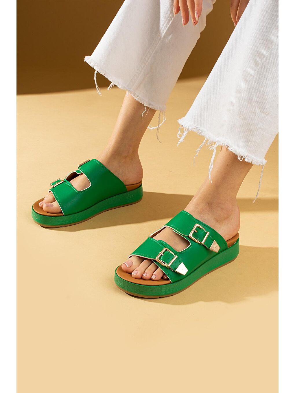دمپایی راحتی زنانه دو سگکدار طلایی سبز