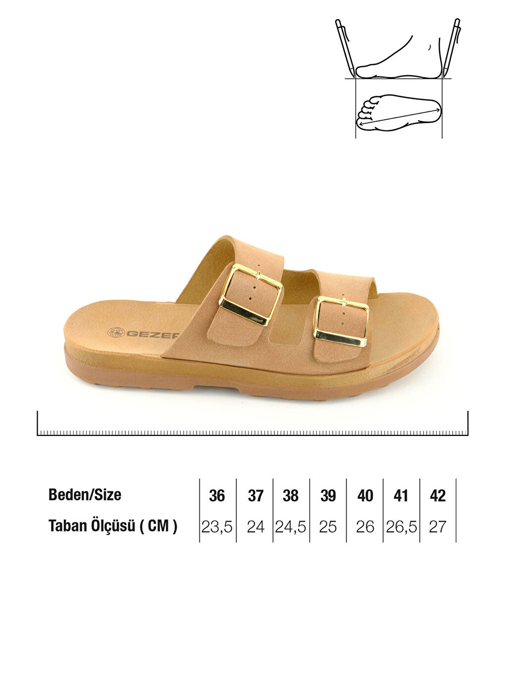 دمپاییهای تابستانی Gezer ما دارای کفی چرم مصنوعی، کفی پلی اورتان و رویه چرم مصنوعی هستند. مدل دو سگک ما که برای استفاده روزمره، از جمله استفاده در خانه و باغ، مناسب است، دارای سگکهای قابل تنظیم برای تناسب با پای شما میباشد. کفی آن نسبتاً سفت و در عین حال راحت است. این مدل که علاوه بر شیک بودن به لباسهای تابستانی شما اضافه میشود، حتی در طول استفاده طولانی مدت نیز راحتی را به ارمغان میآورد. ابعاد کفی در تصاویر محصول به سانتیمتر نشان داده شده است. میتوانید اندازهای را که متناسب با نیازهای شما است، انتخاب کنید. محصولات ما عاری از مواد شیمیایی خطرناکی هستند که معمولاً در کفش یافت میشوند تا از سلامت و ایمنی مصرفکننده محافظت کنند.