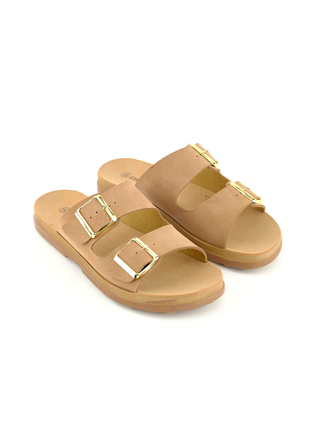 دمپایی راحتی زنانه تابستانی قهوهای، دو سگک، راحت و قابل تنظیم، دمپایی راحتی زنانه