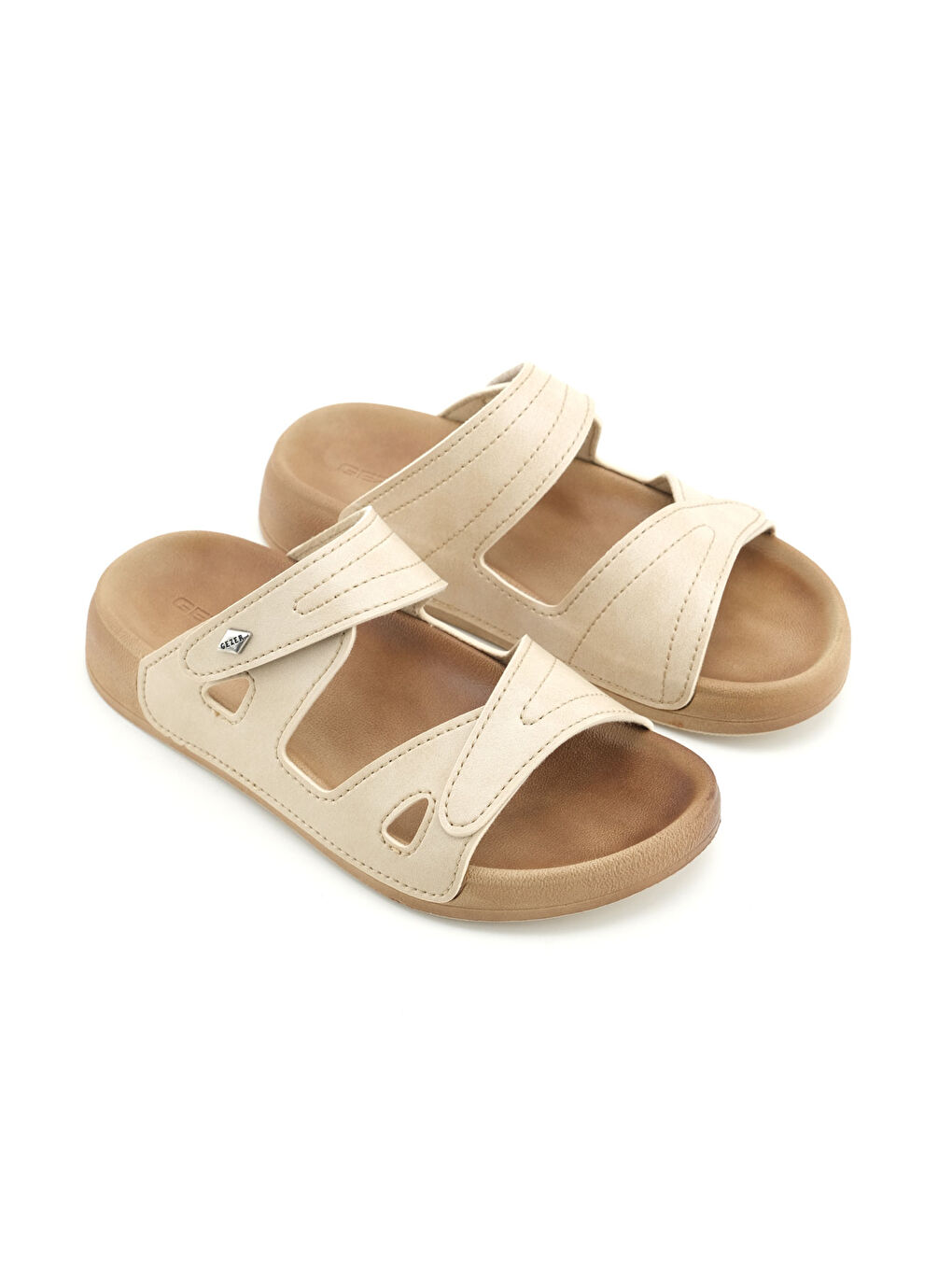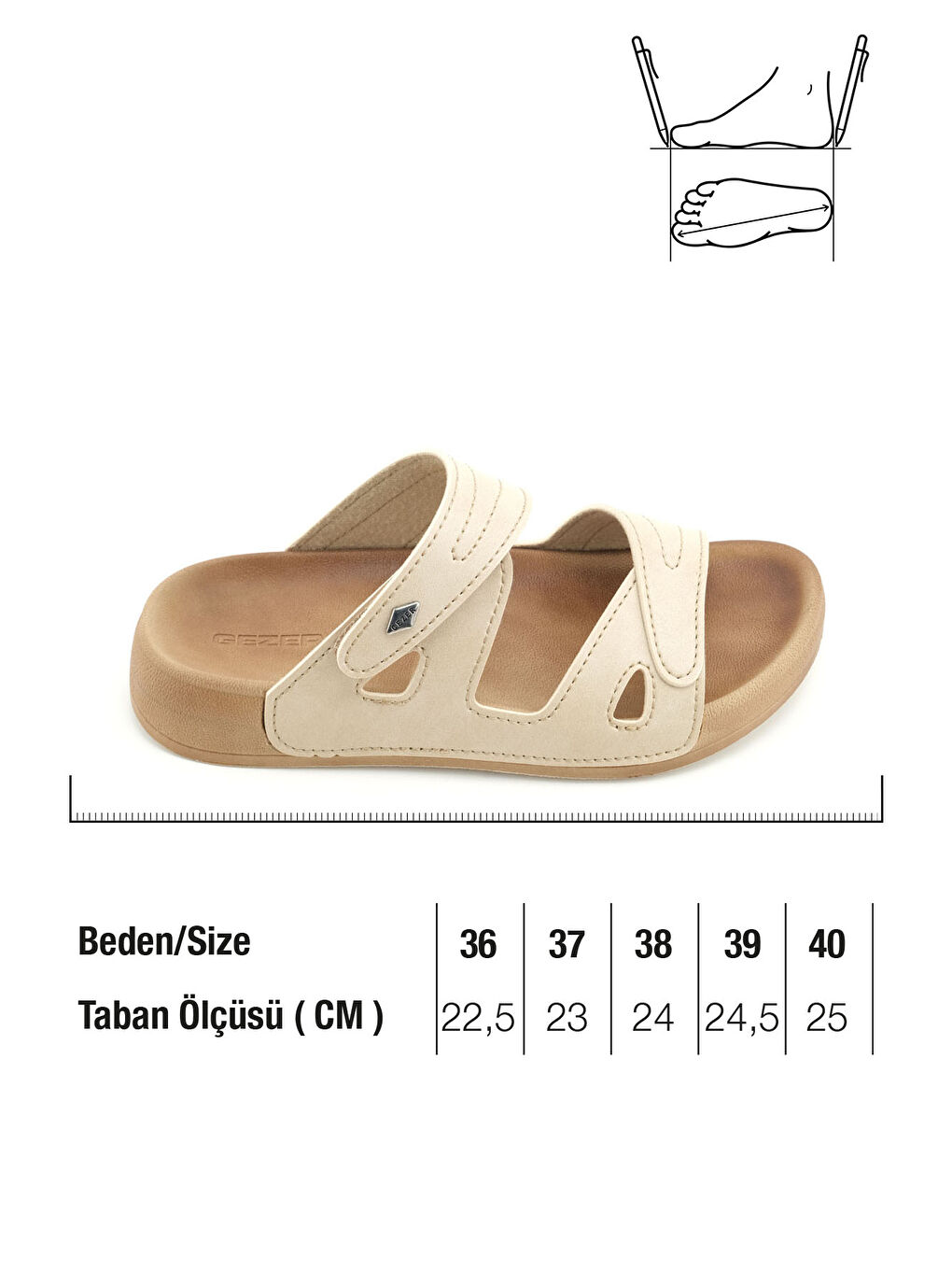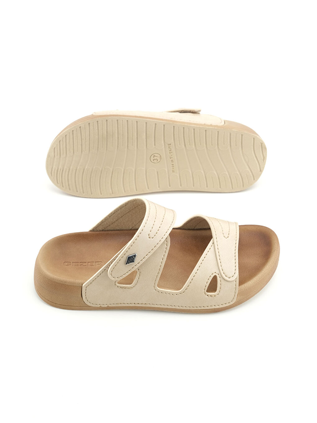 دمپایی راحتی تابستانی زنانه Gezer مدل چرم مصنوعی با کفی قابل تنظیم و چسبی، رنگ: کرم