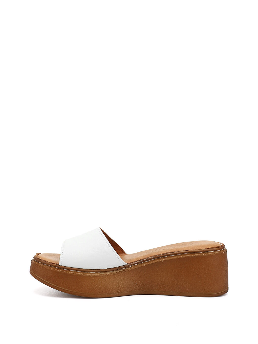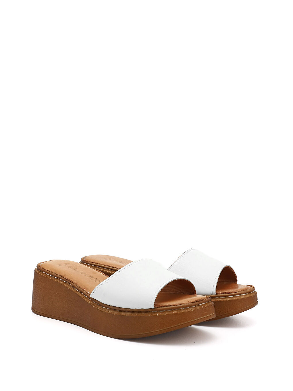 دمپایی زنانه سفید، خاکستری روشن، زیره گوه‌ای، چرم اصل
