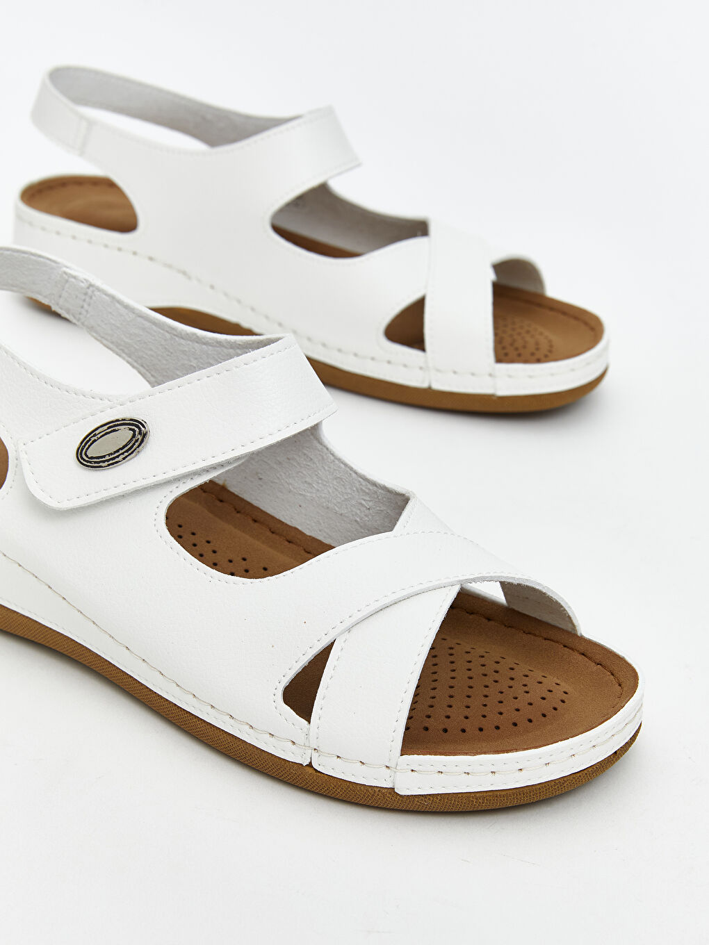 صندل‌های لژدار زنانه دارای طراحی پنجه باز، کفی سوراخ‌دار، بند ضربدری و قفل قلاب‌دار هستند.