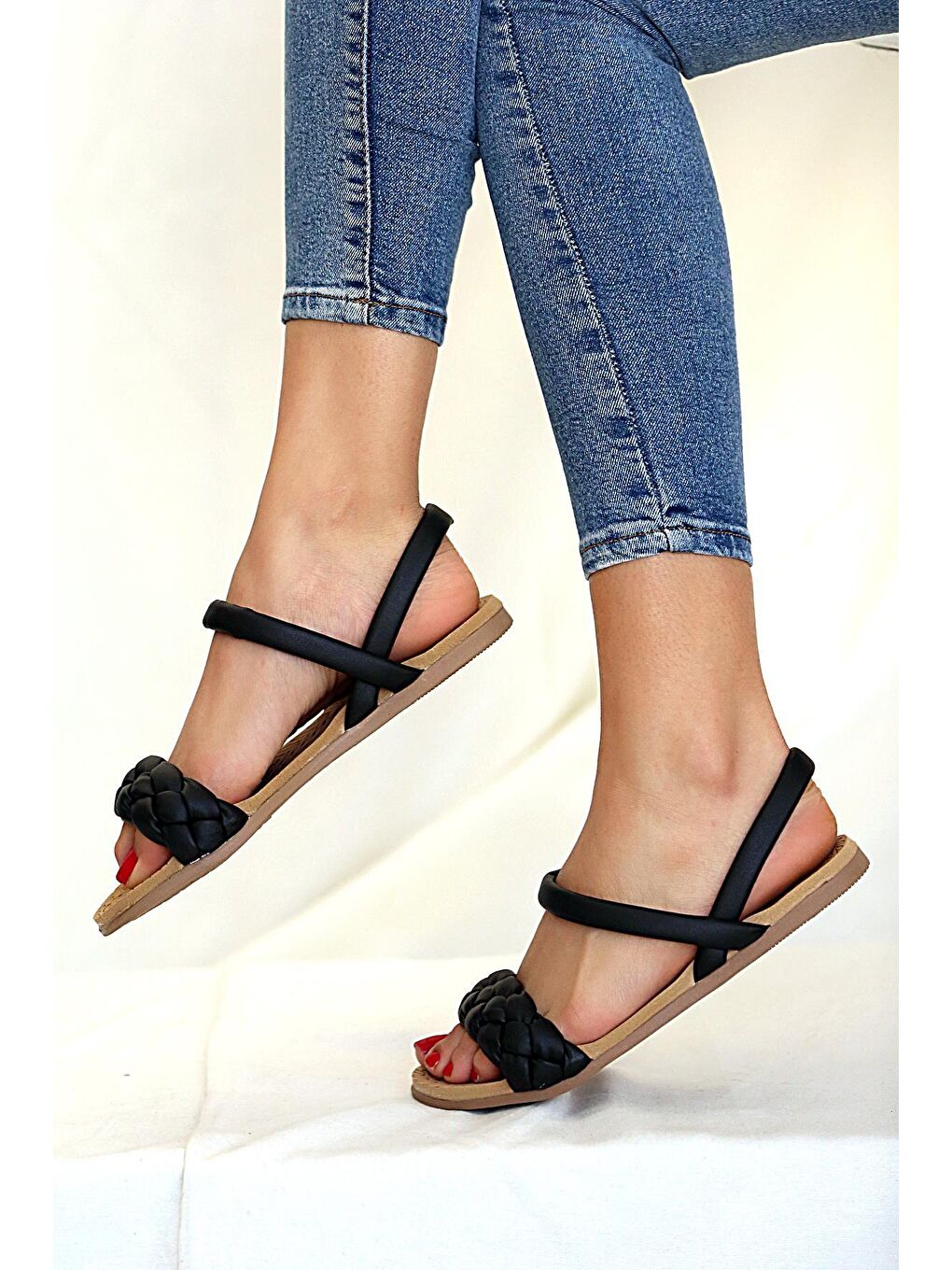 صندل زنانه راحت و زیره بافته مشکی ۴۱-۳۰-۲۲