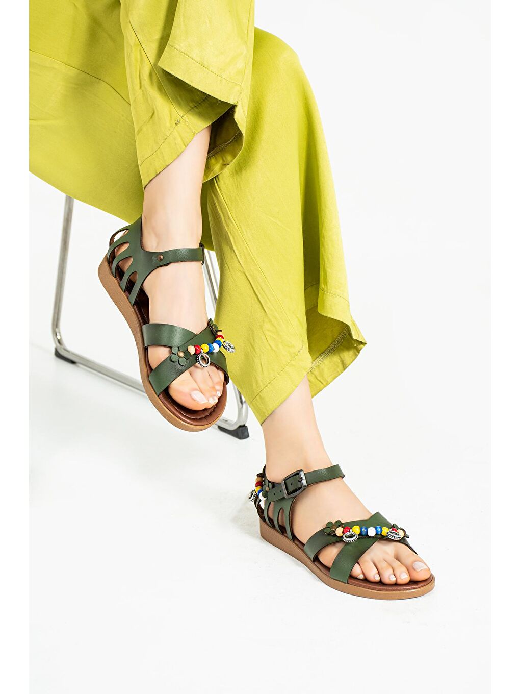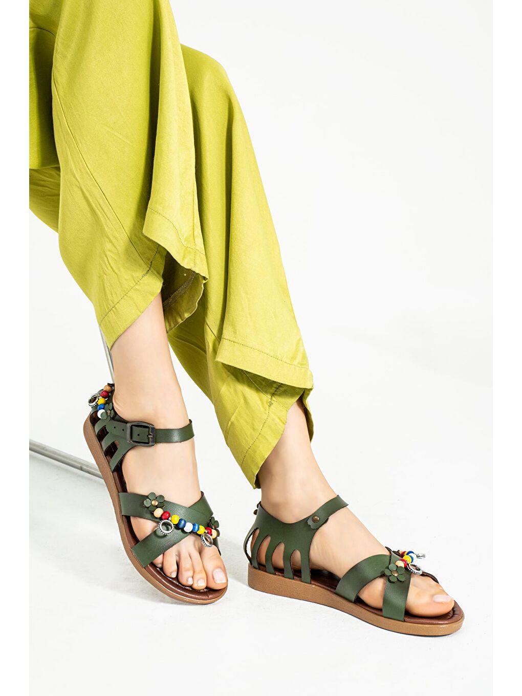 صندل زنانه خاکی بنددار ضربدری طرح سگک‌دار Bodrum مدل 51-195-23