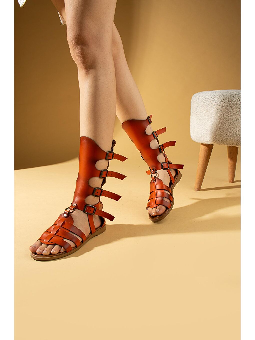 صندل زنانه گلادیو مدل Gladio با 4 سگک جلو باز و زیپدار و راحت، نارنجی، 51-0403-24
