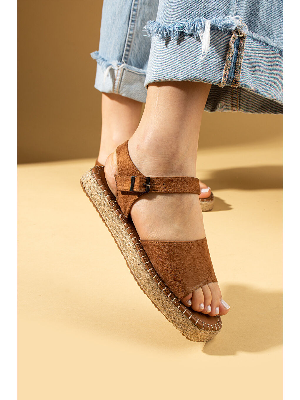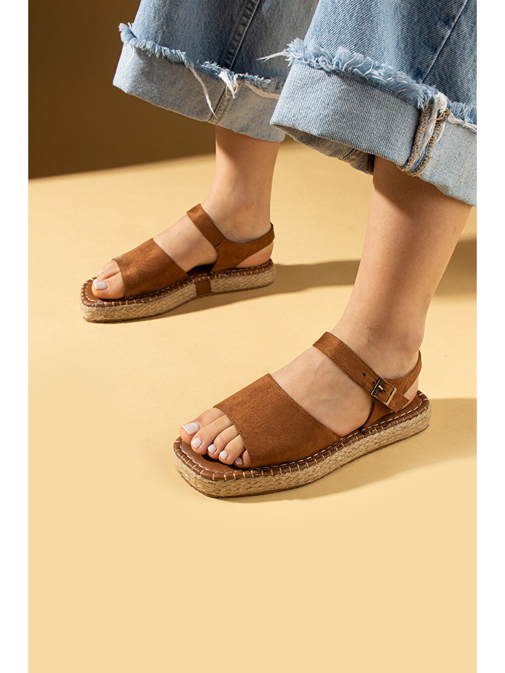 صندل زنانه سگکدار با کفی حصیری ضخیم قهوهای 016-022-25 جیر