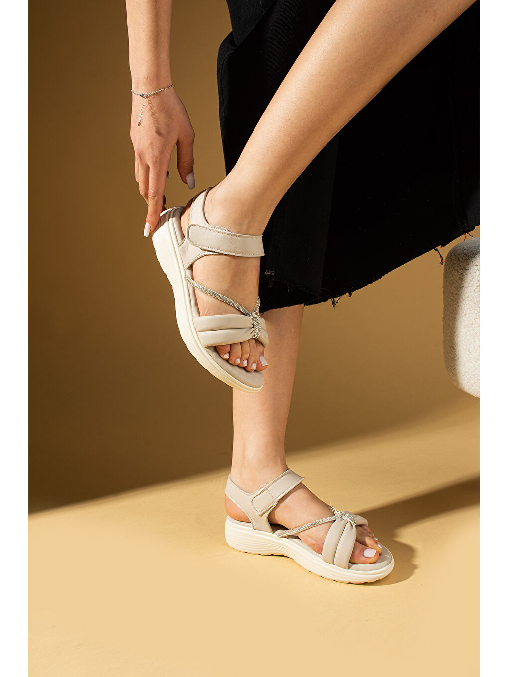 صندل زنانه ولکرو با کفی ماساژور دقیق سنگ بژ، مدل ۵۹-۶۳-۲۵