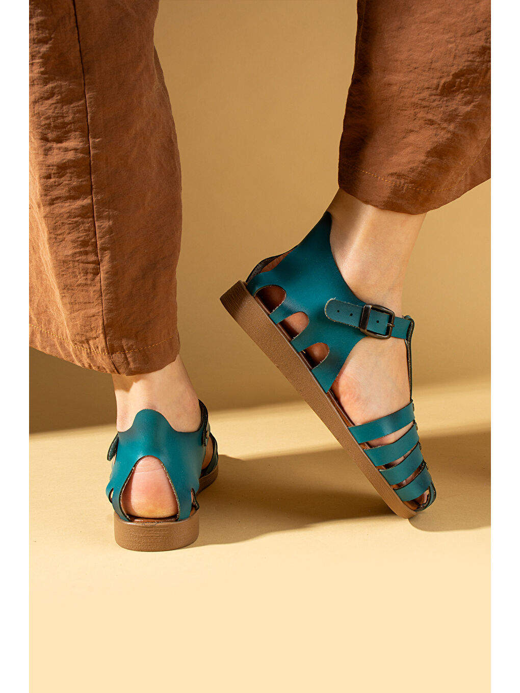 صندل زنانه چهار تکه آبی سگکدار راحت، ۵۱-۱۷۱-۲۵