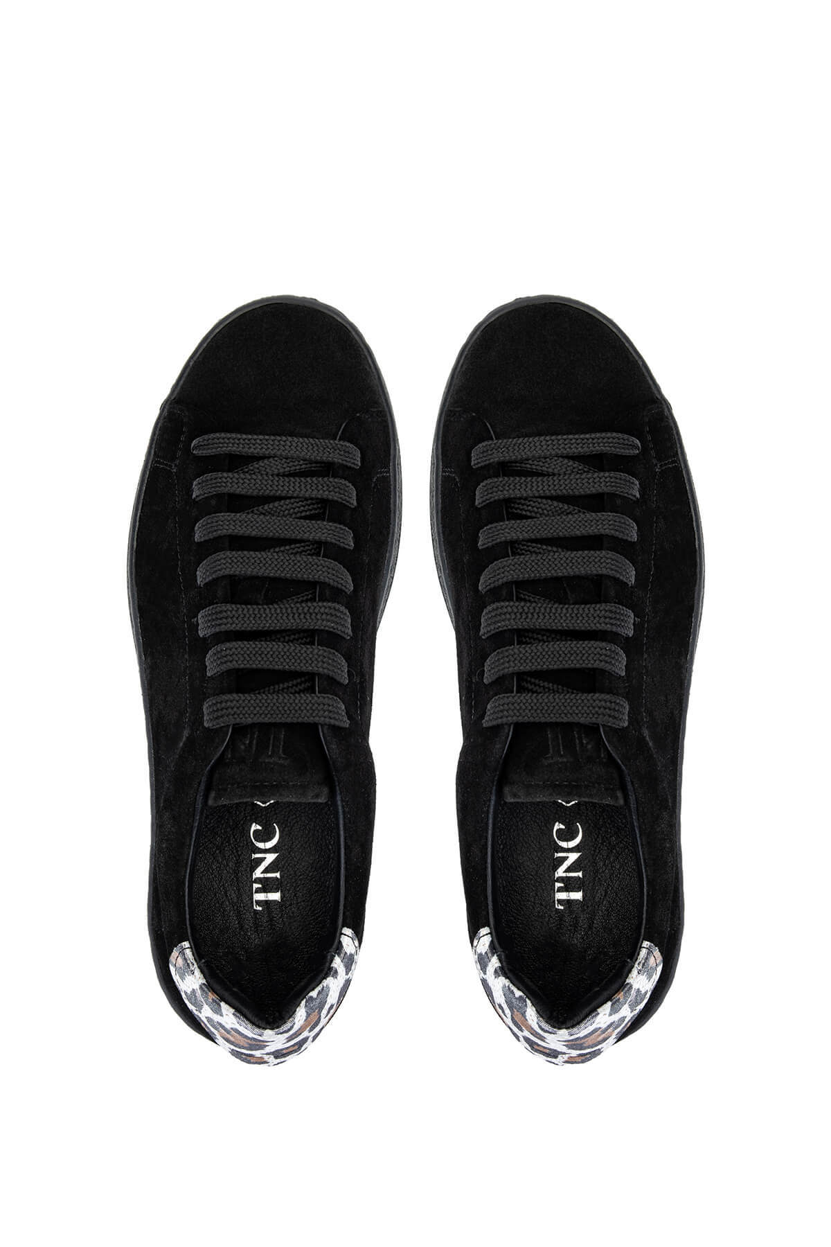 تامر تانجا کفشهای کتانی و ورزشی زنانه چرم اصل جیر مشکی/پلنگی مشکی و سفید