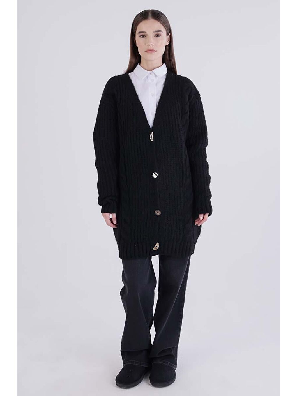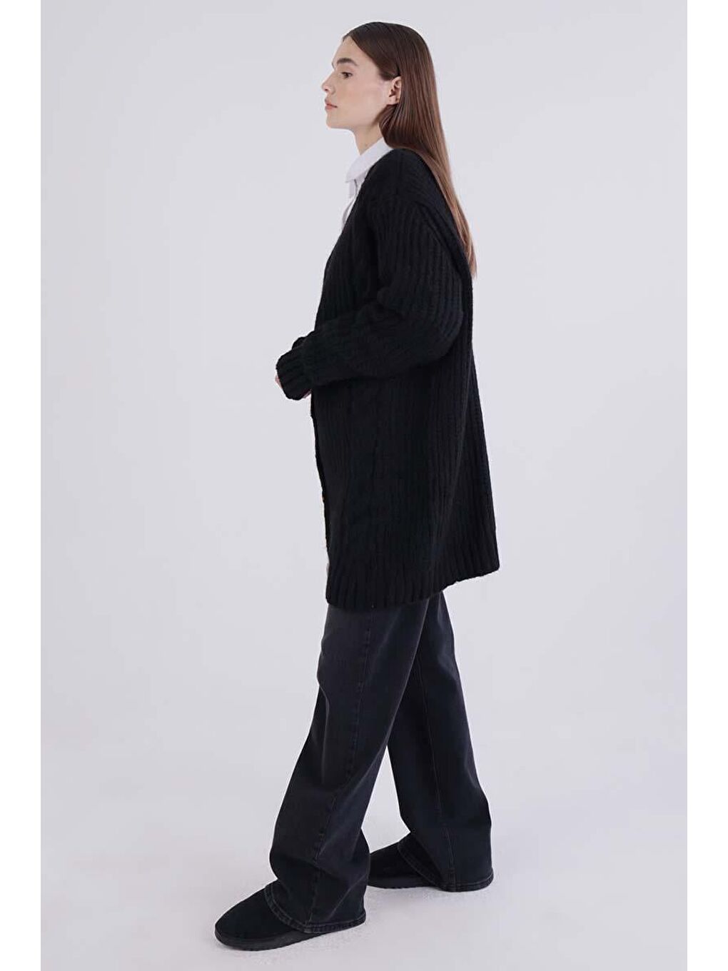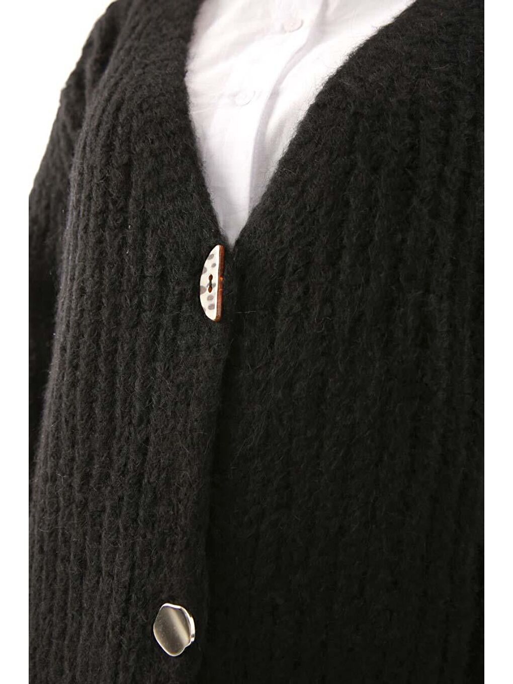 ژاکت بافتنی دکمه‌دار یقه هفت مشکی