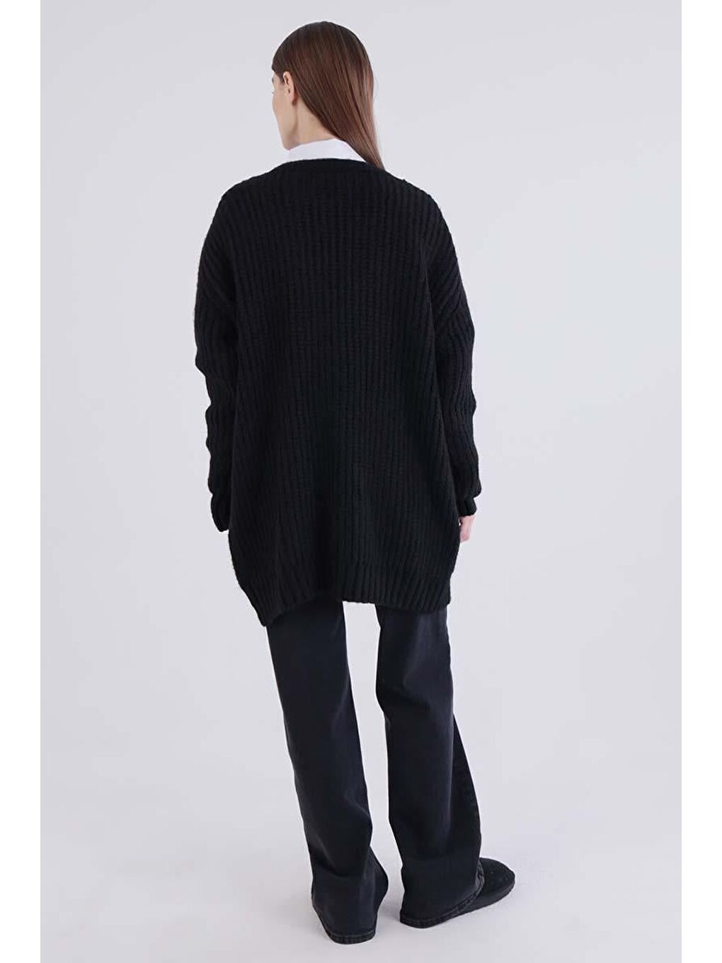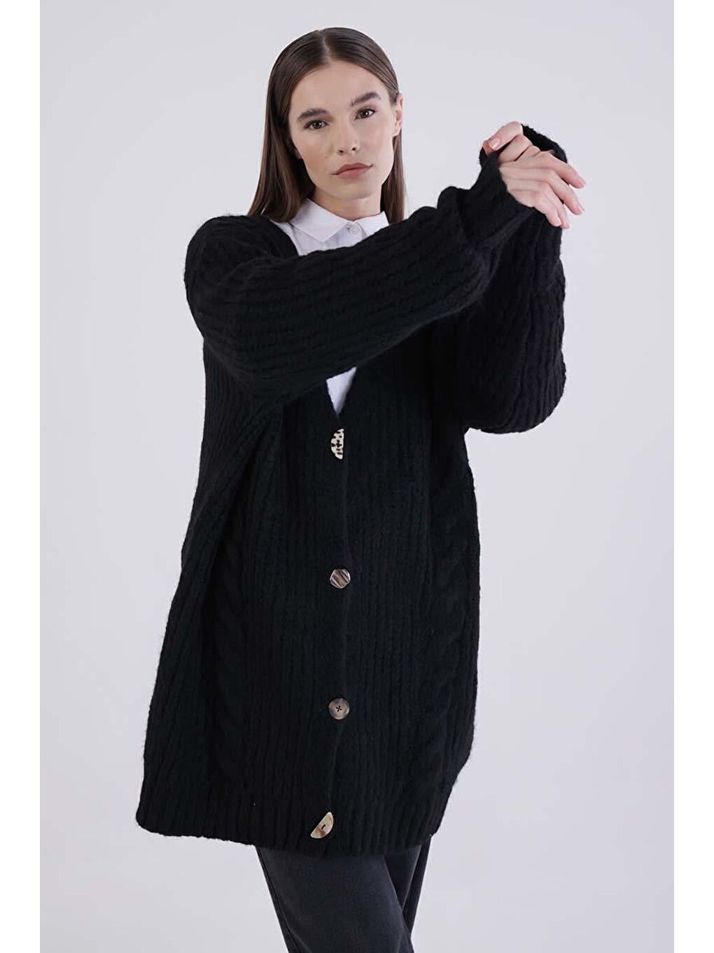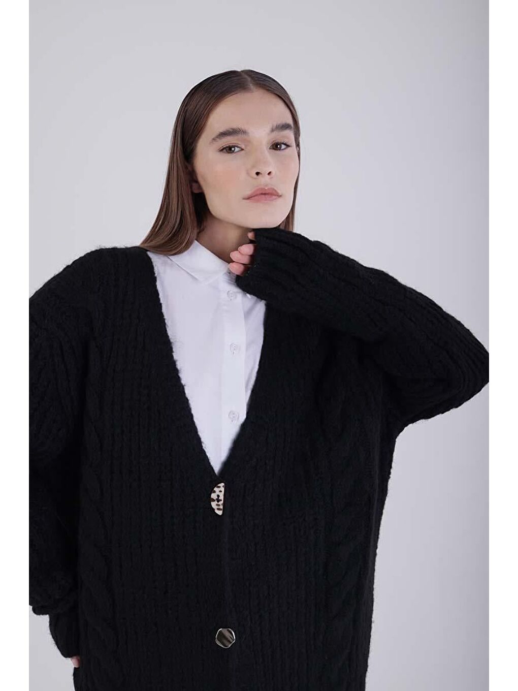 ژاکت بافتنی دکمه‌دار یقه هفت مشکی