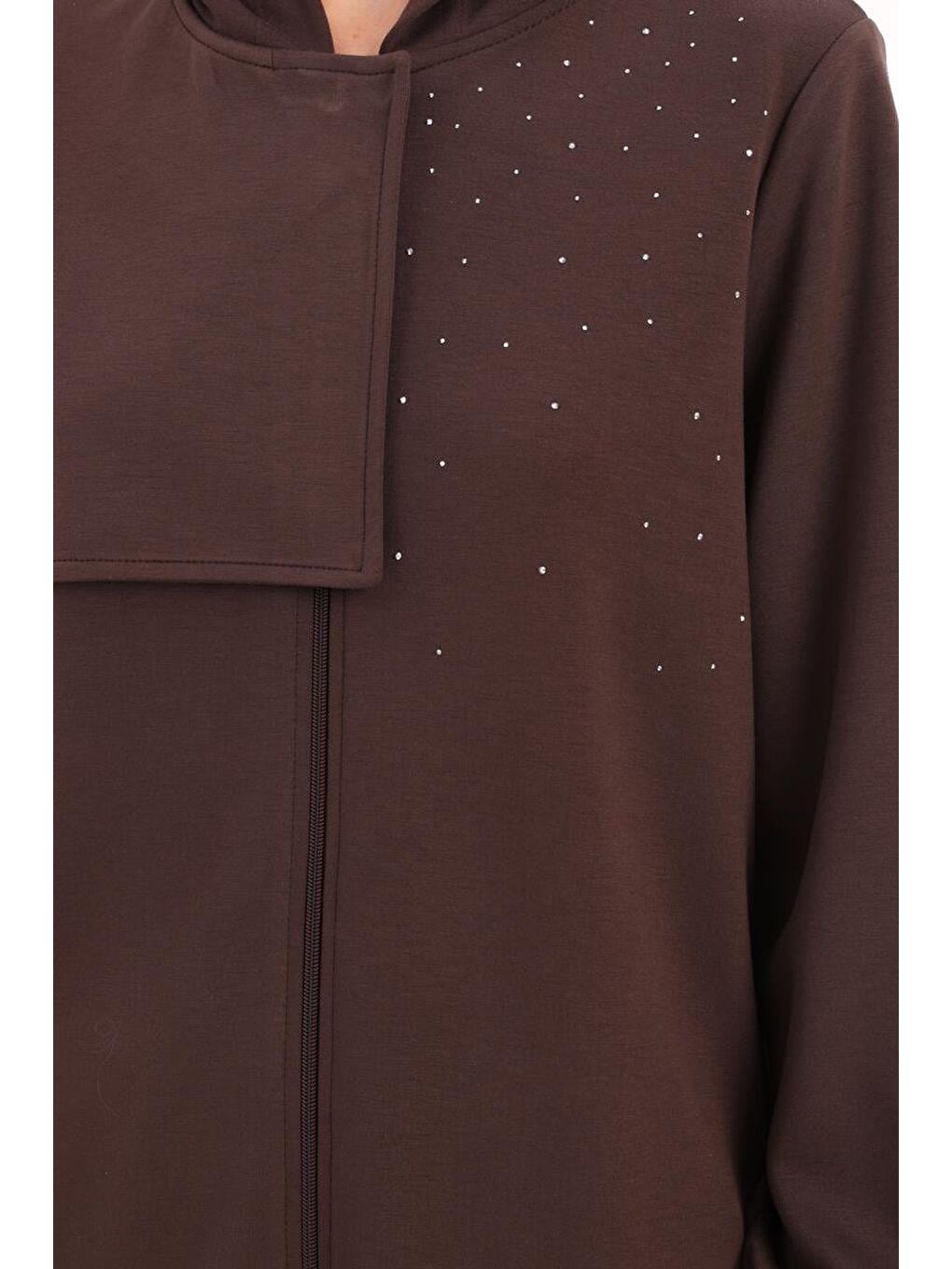 ژاکت بافتنی کلاه دار طرح سنگ قهوه ای