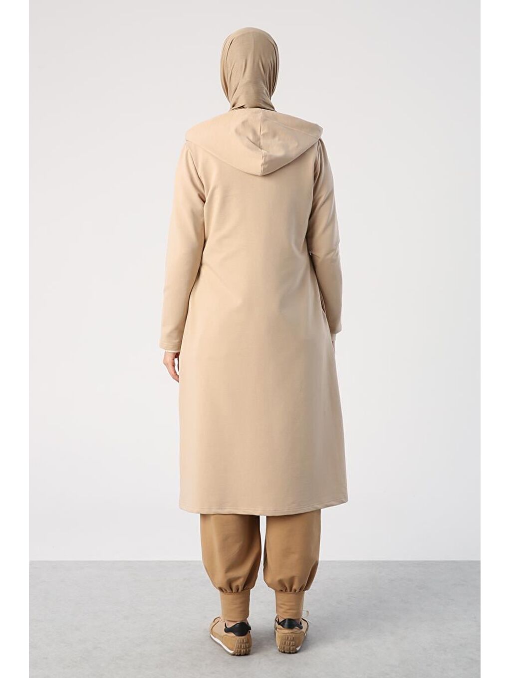 ژاکت بافتنی کلاه دار دو لایه دوزی شده بژ