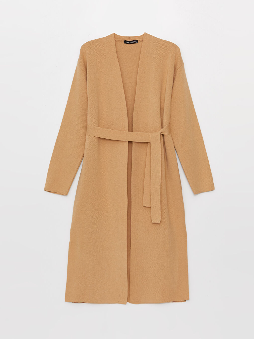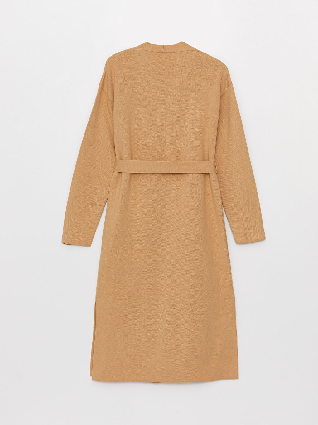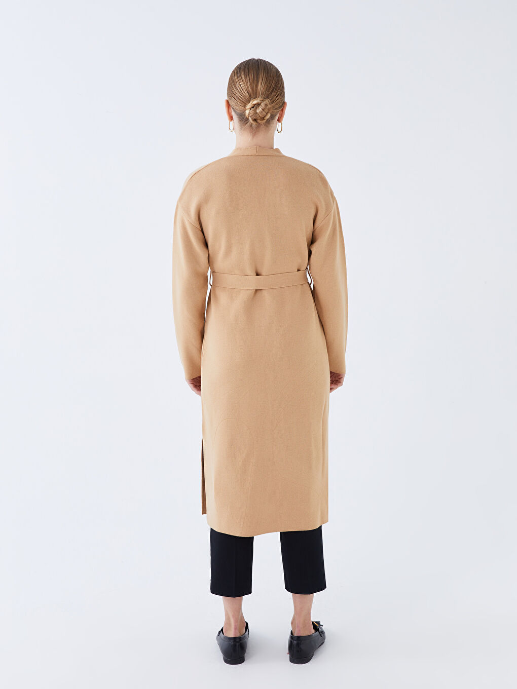 این ژاکت بافتنی یقه شالی با جزئیات گره‌ای در کمر، ظاهری شیک ارائه می‌دهد و کاملاً اندازه است. طراحی آستین بلند آن، ضمن گرم نگه داشتن شما، استایل شما را تکمیل می‌کند.