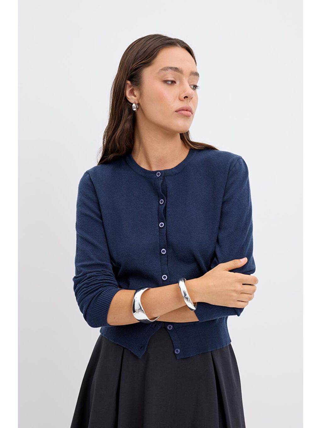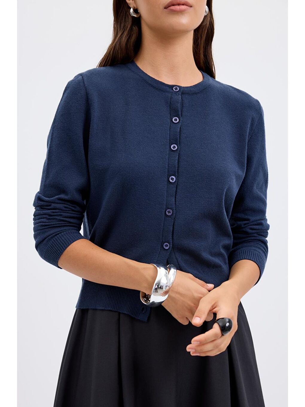 ژاکت بافتنی دکمهدار یقه گرد سرمهای