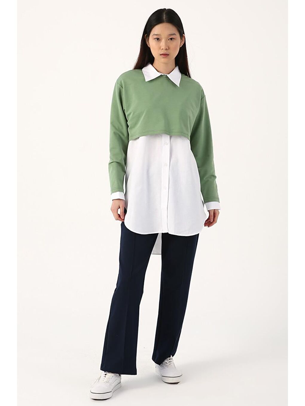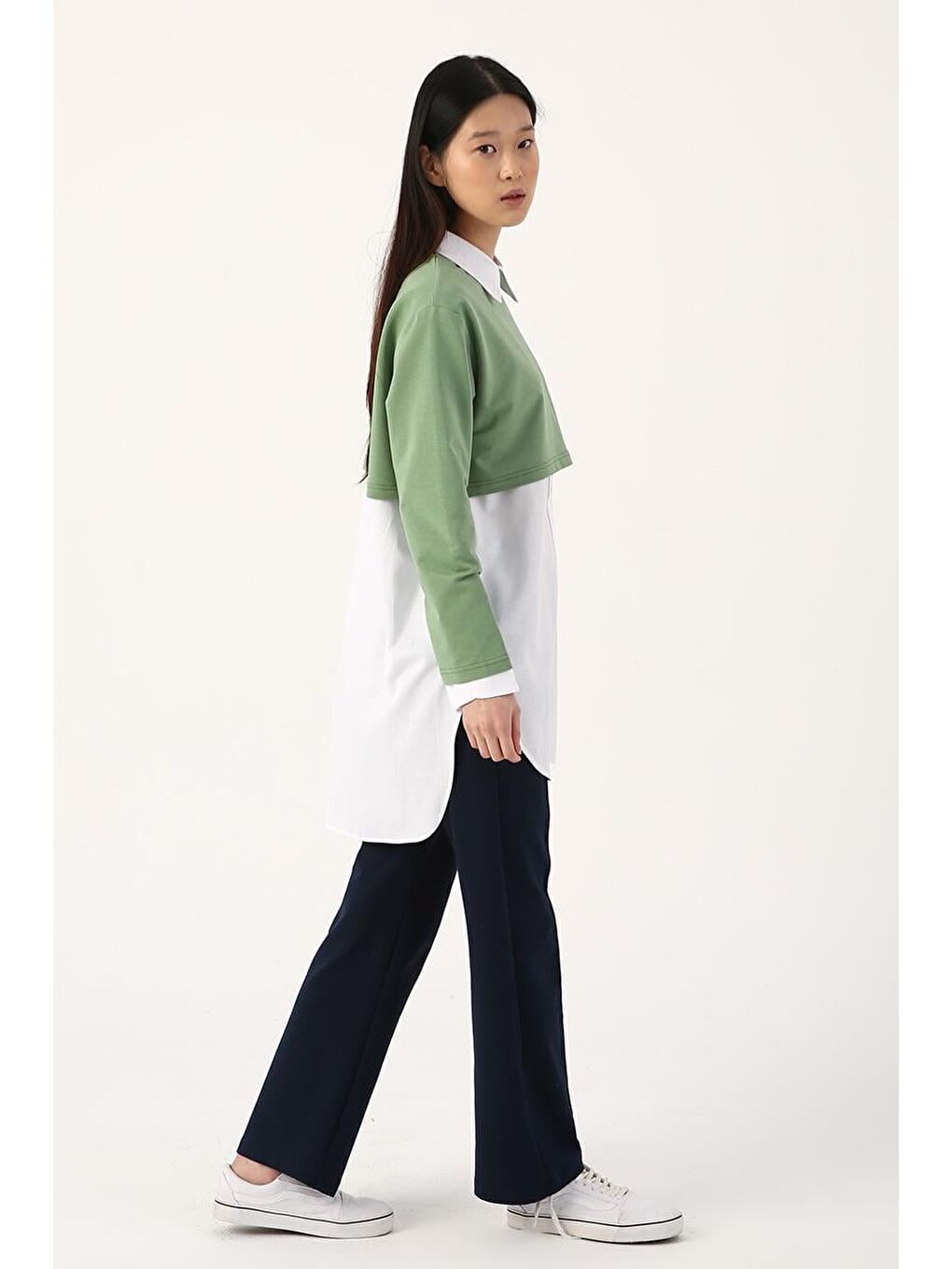 با تاپ آستین بلند یقه گرد سبز، استایلی مدرن و راحت داشته باشید