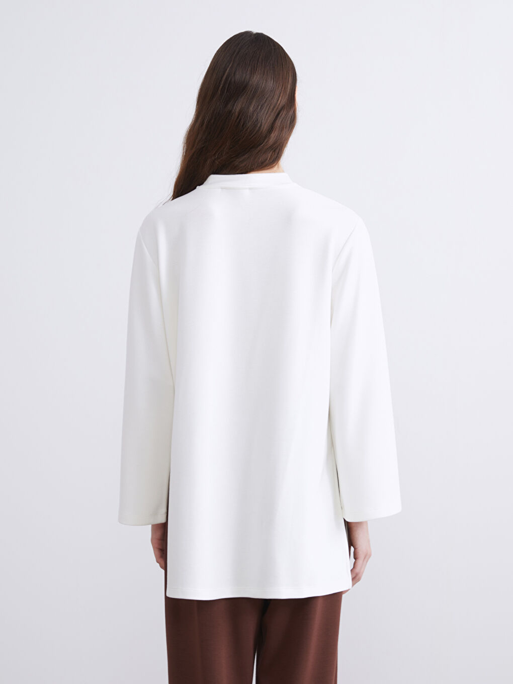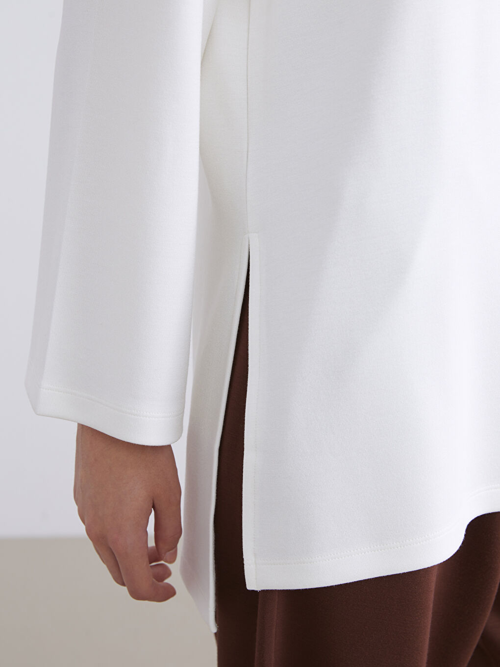 تونیک سویشرت زنانه با یقه ایستاده و برش پهن، آستین بلند، دارای برش مستقیم با چاک‌های کناری است.